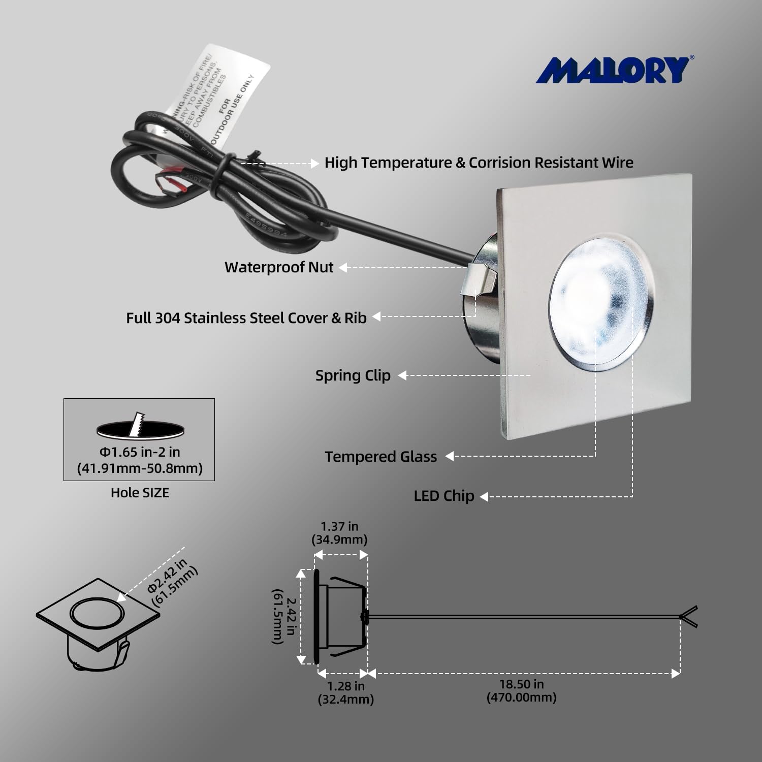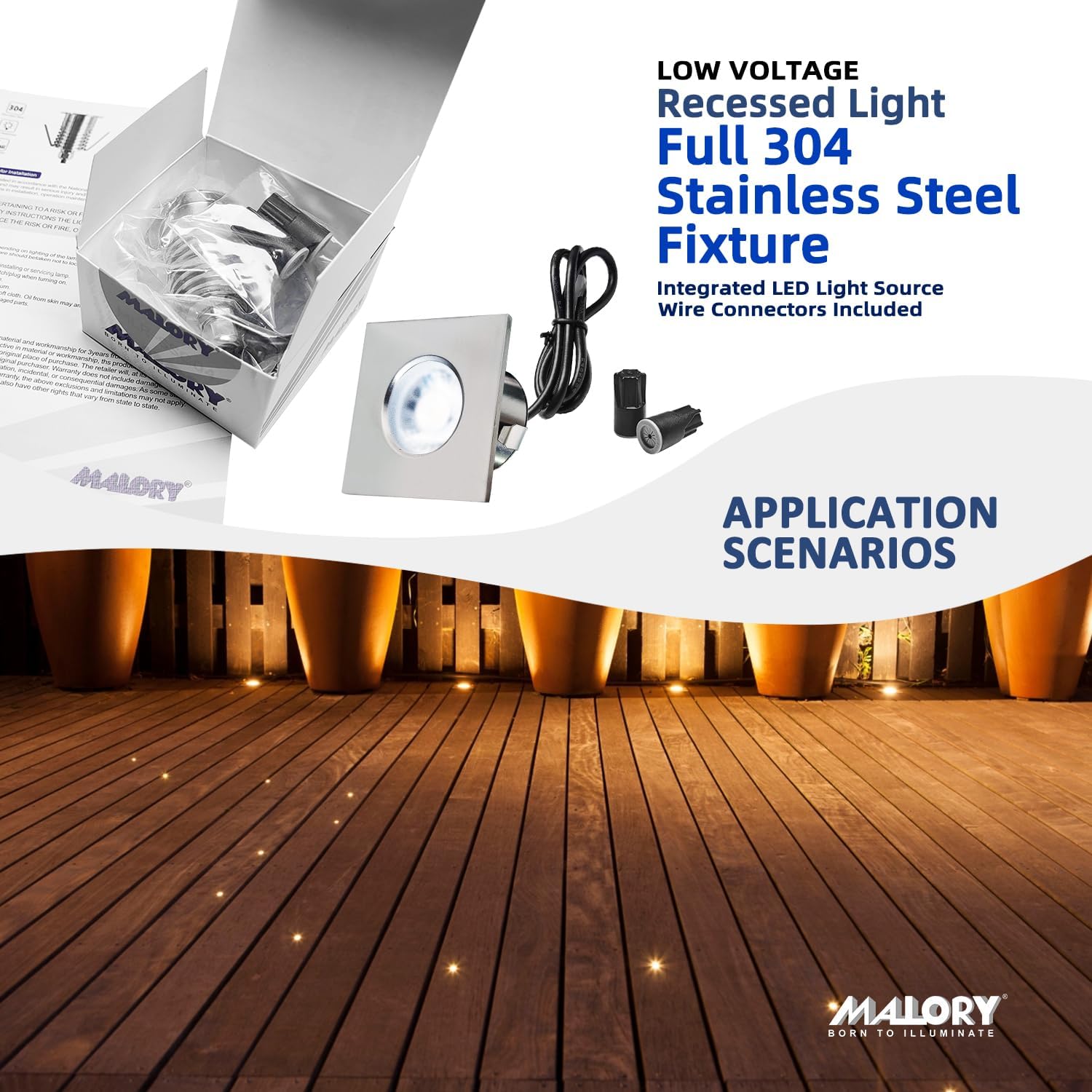 Full 304 Stainless Steel & Detachable Cover - - MALORY Recessed LED Deck Light are made of full 304 stainless steel for any outdoor environment use. This ground light is not an integrated design, which can unscrew the lid and perform partial replacement