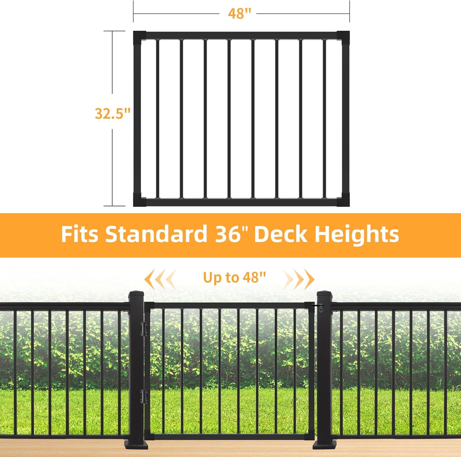 Deck Fence Gate Outdoor, 32'H Gate for 36'H Deck, Black Heavy Duty Steel Anti-Rust Door with Adjustable Width