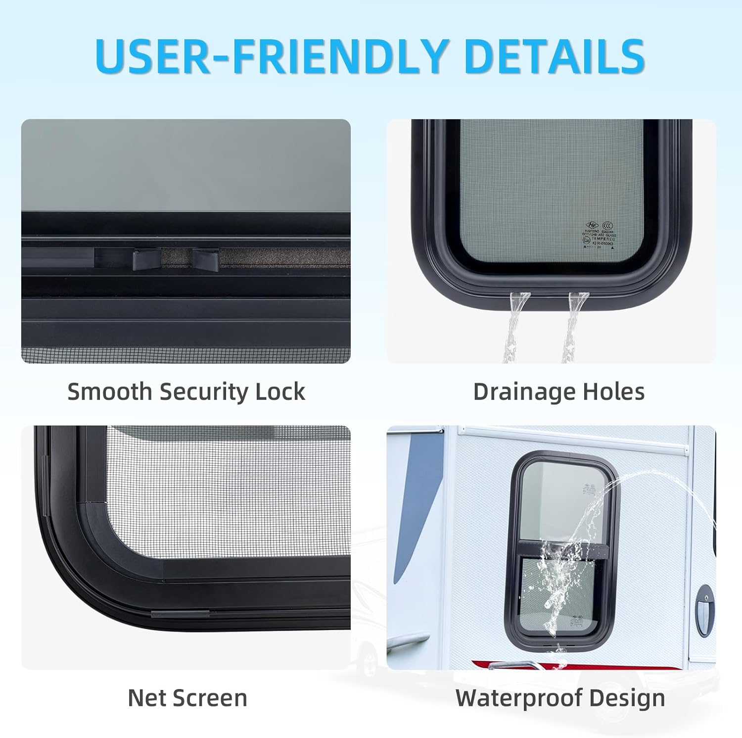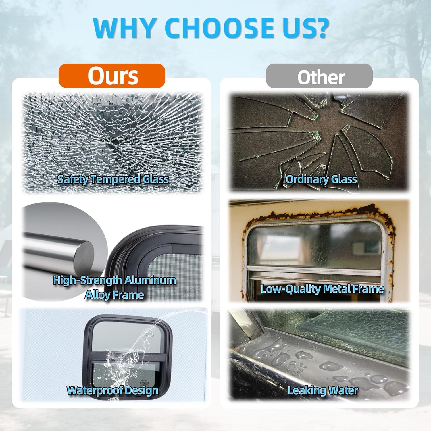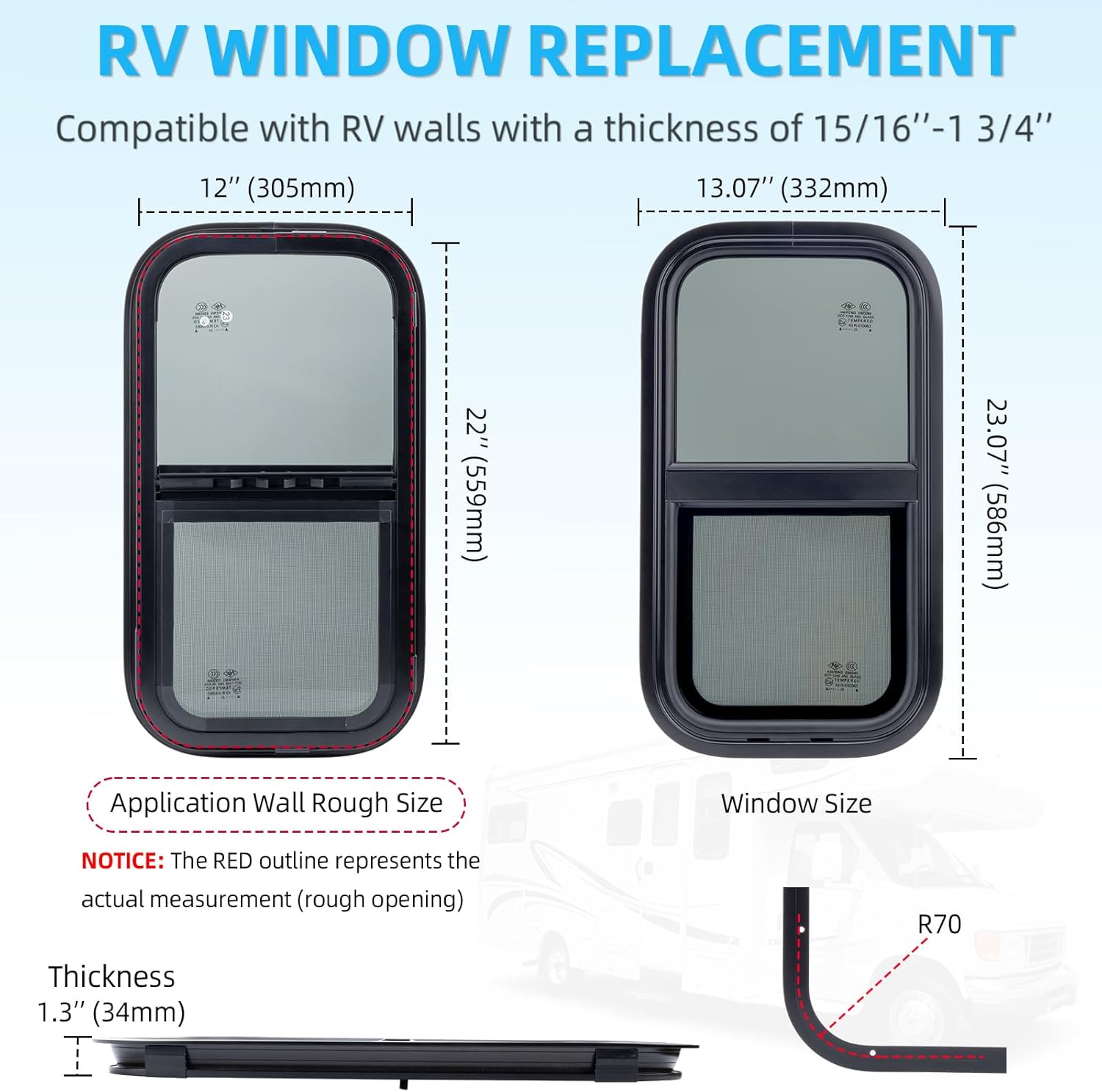 Important Note Sealant is not included with this RV window. For best installation results and weatherproofing, we recommend using a silicone-based sealant that is compatible with RV or camper window materials. If you have any installation questions, feel free to contact us—our team is here to help.