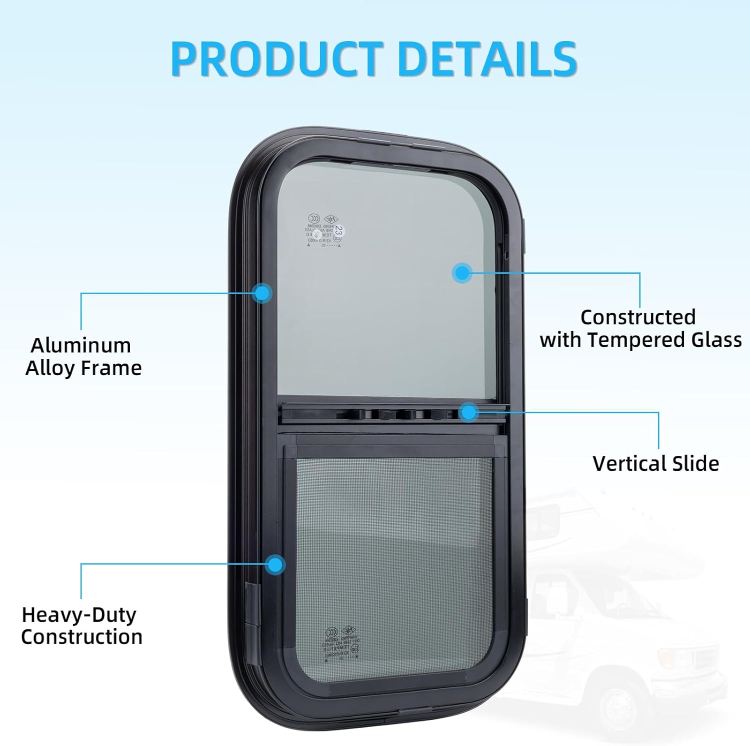 RV Window for Trailer Camper, 30' W x 20' H RV Exit Window with Net Screen and Trim Ring