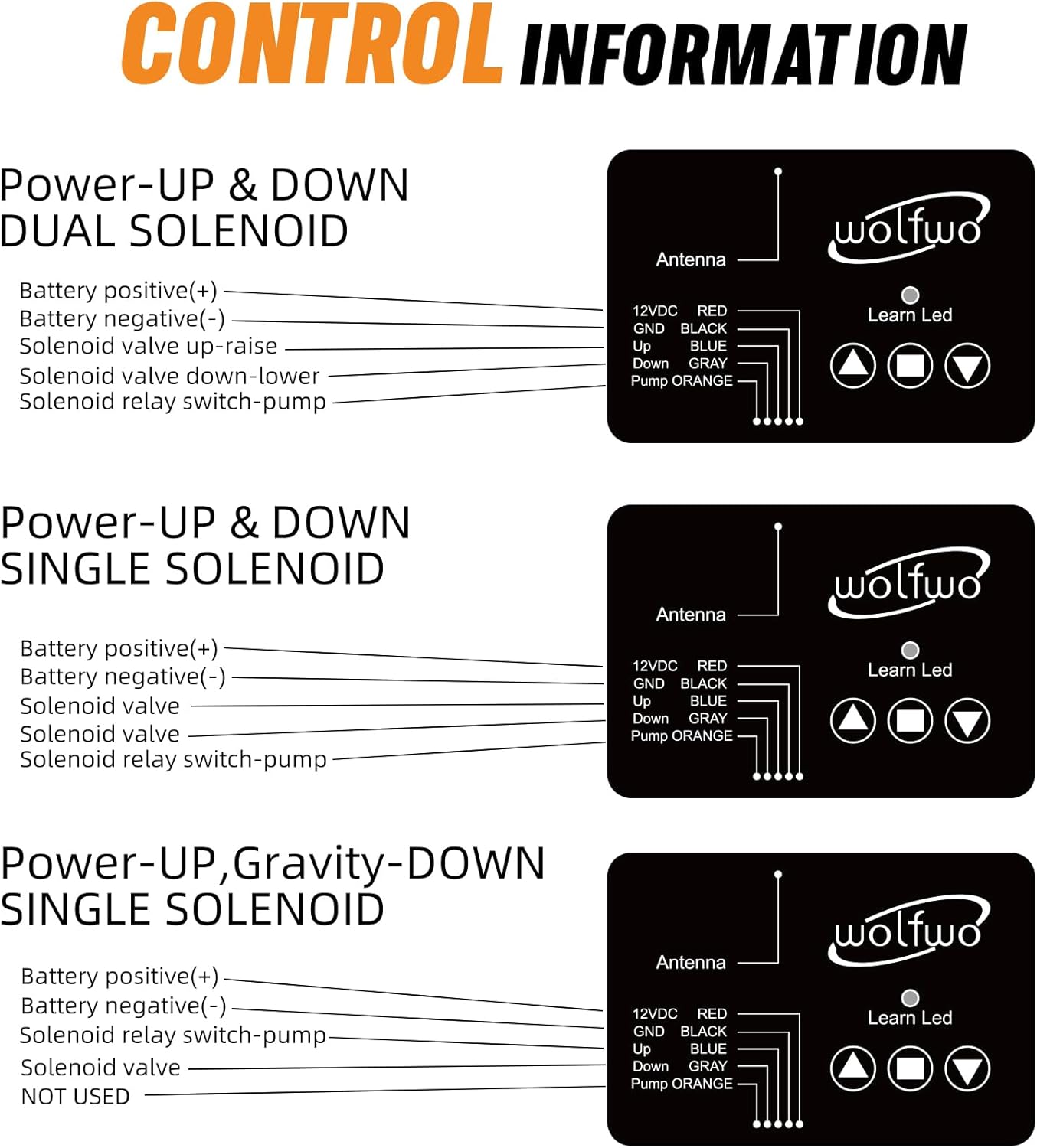 EASY INSTALL-Get set up in minutes! Compatible with 3-wire or 4-wire hydraulic dump trailer. Clear color-coded wiring (Red=+12V, Black=Ground, Blue=Up, Grey=Down, Orange=Pump) and simple remote pairing make DIY installation a breeze. Includes detailed instructions