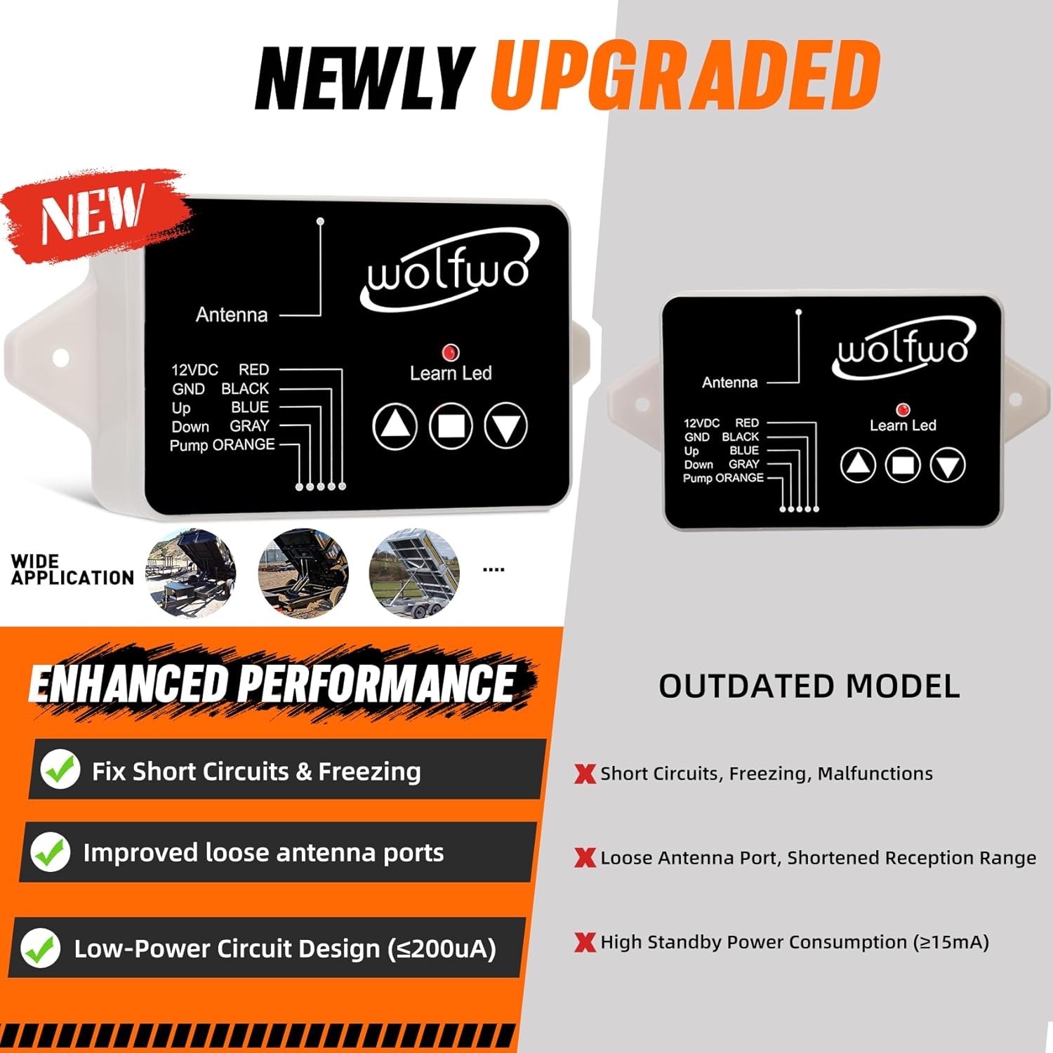 UPGRADED WIRELESS REMOTE-Wolfwo Dump Trailer Wireless Remote Controller, operating your trailer safely from anywhere – the cab, beside the trailer, or walking behind while spreading material, with no worries of driving over or snagging wires again