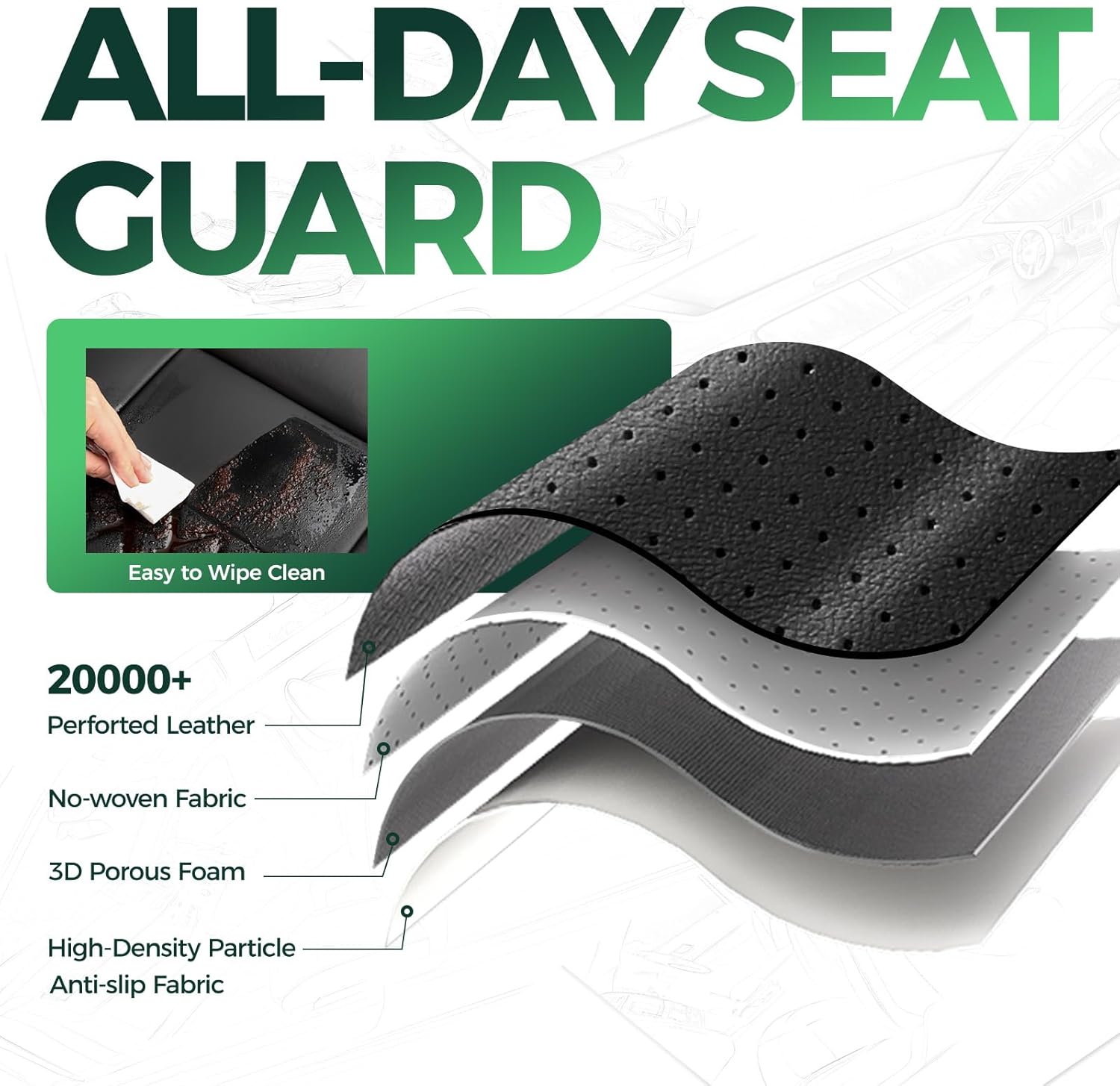 These four-layer constructed waterproof seat covers for cars providing robust protection against coffee spills, pet scratches, and harmful rays. They are effortless to maintain; simply wipe clean with a damp cloth to retain their pristine appearance for years.