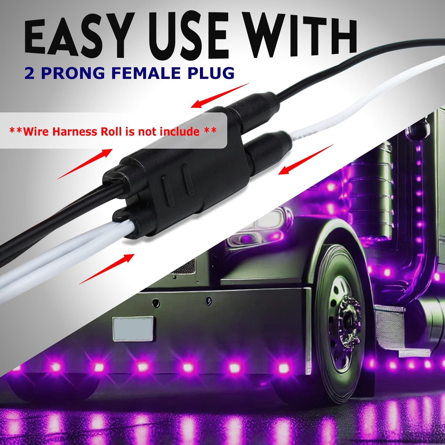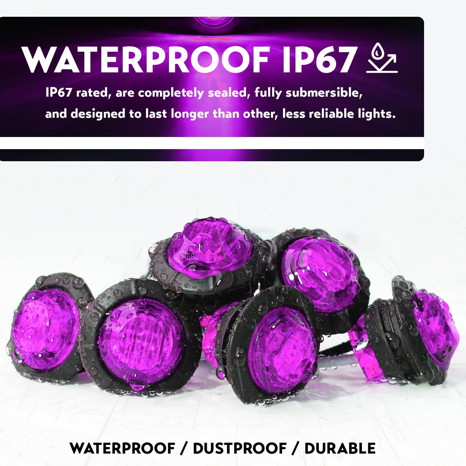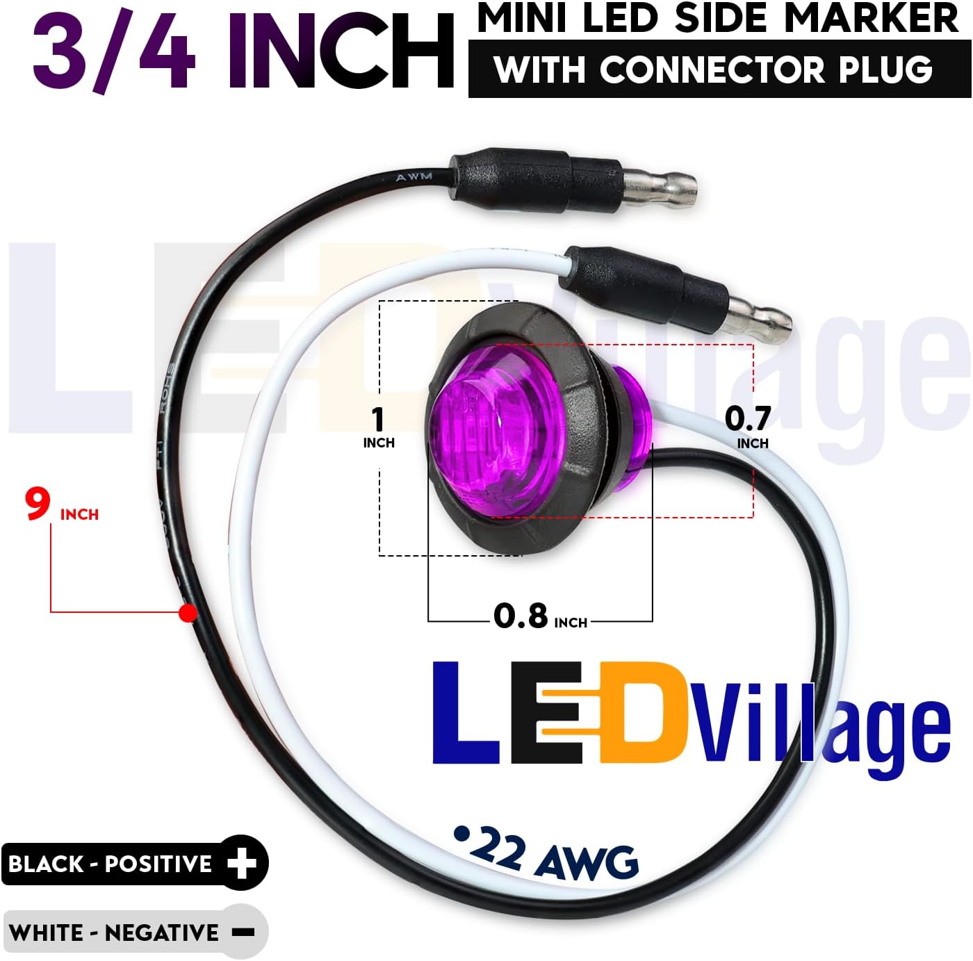 Package includes 3/4 inch “100 pcs purple light” bullet side markers lights and rubber grommets.