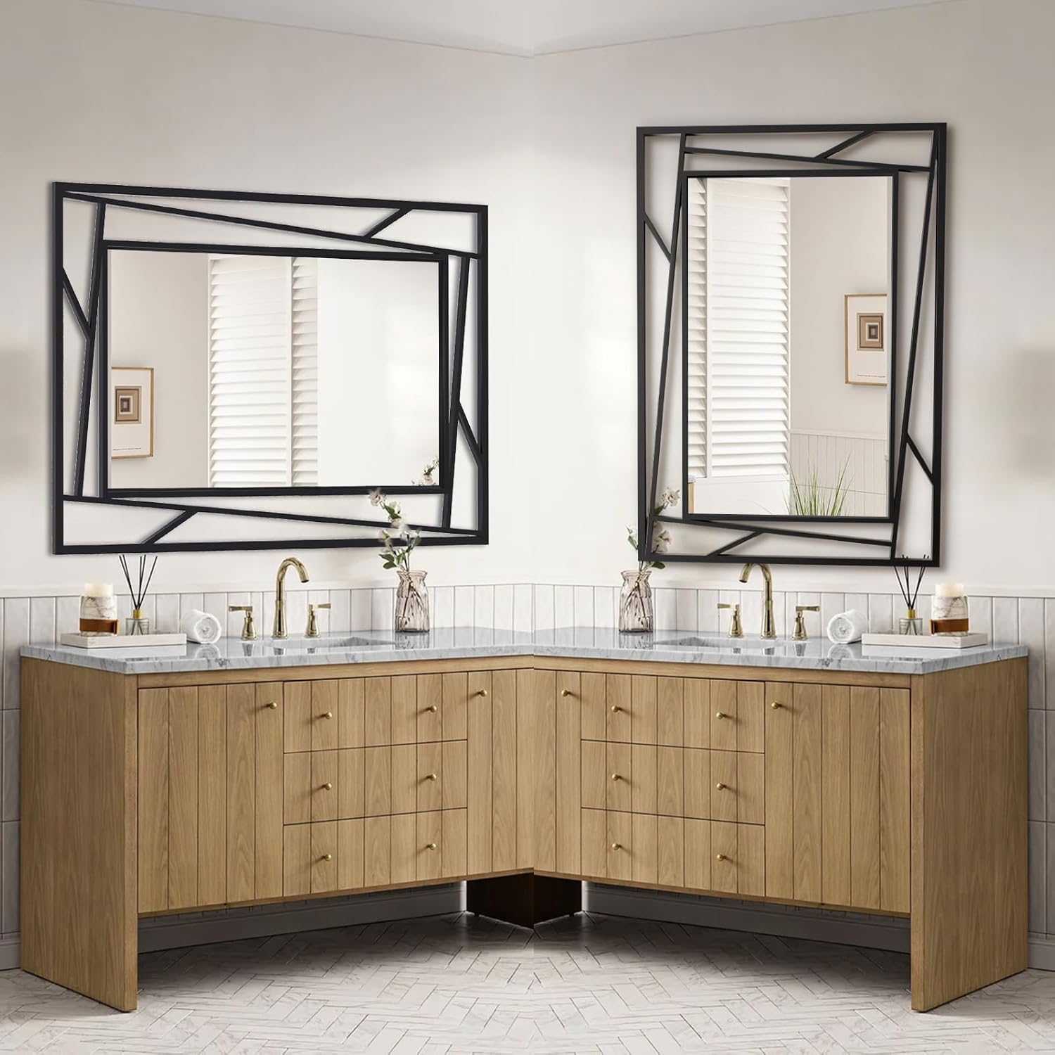 Large Modern Geometric Wall Mirror: Our 24x36 inch black metal framed mirror features a golden ratio design that enhances the feeling of space. It can be mounted above the fireplace to create a focal point, enhance the sense of light in your living room, and brighten up a narrow entry wall.