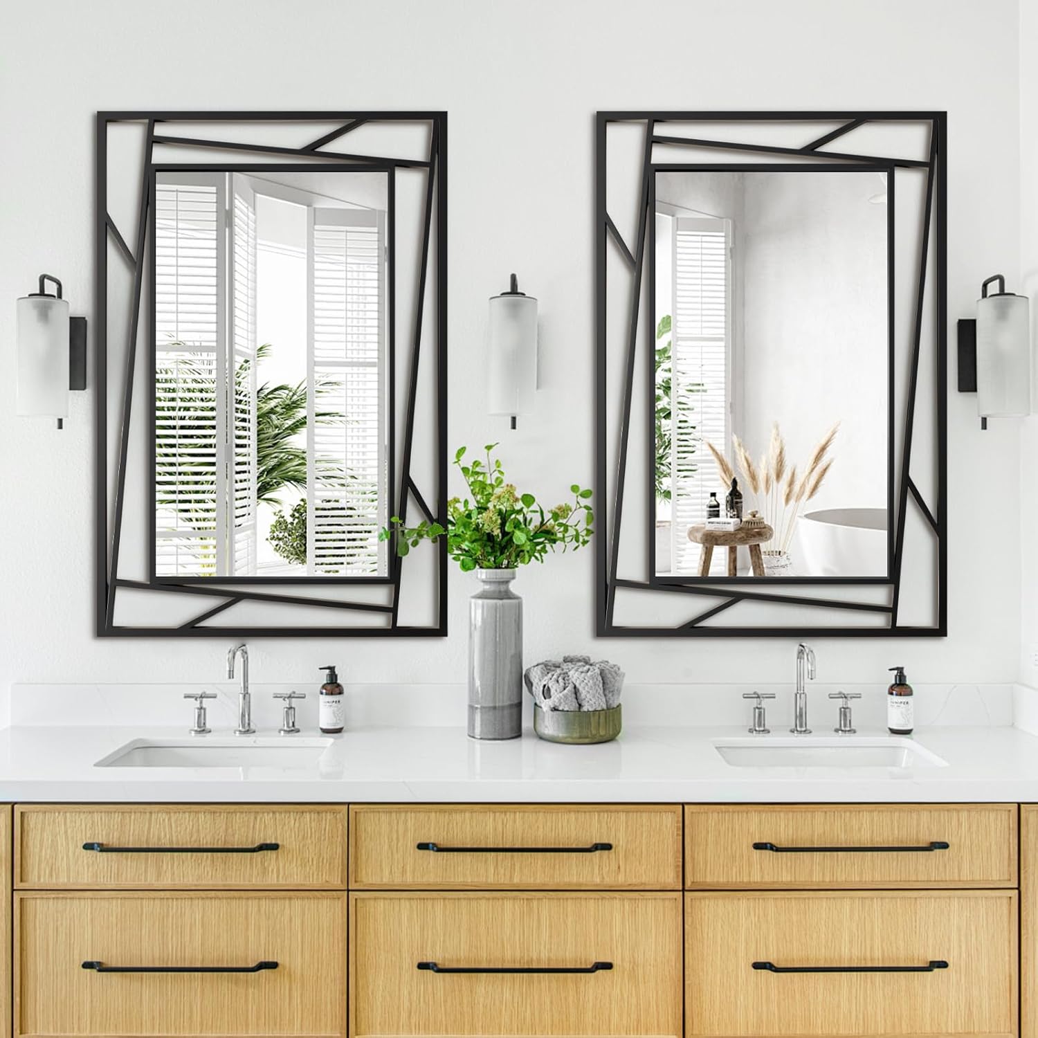 Black Decorative Mirror, 36'X24' Decorative Wall Mirrors with Geometric Metal Frame