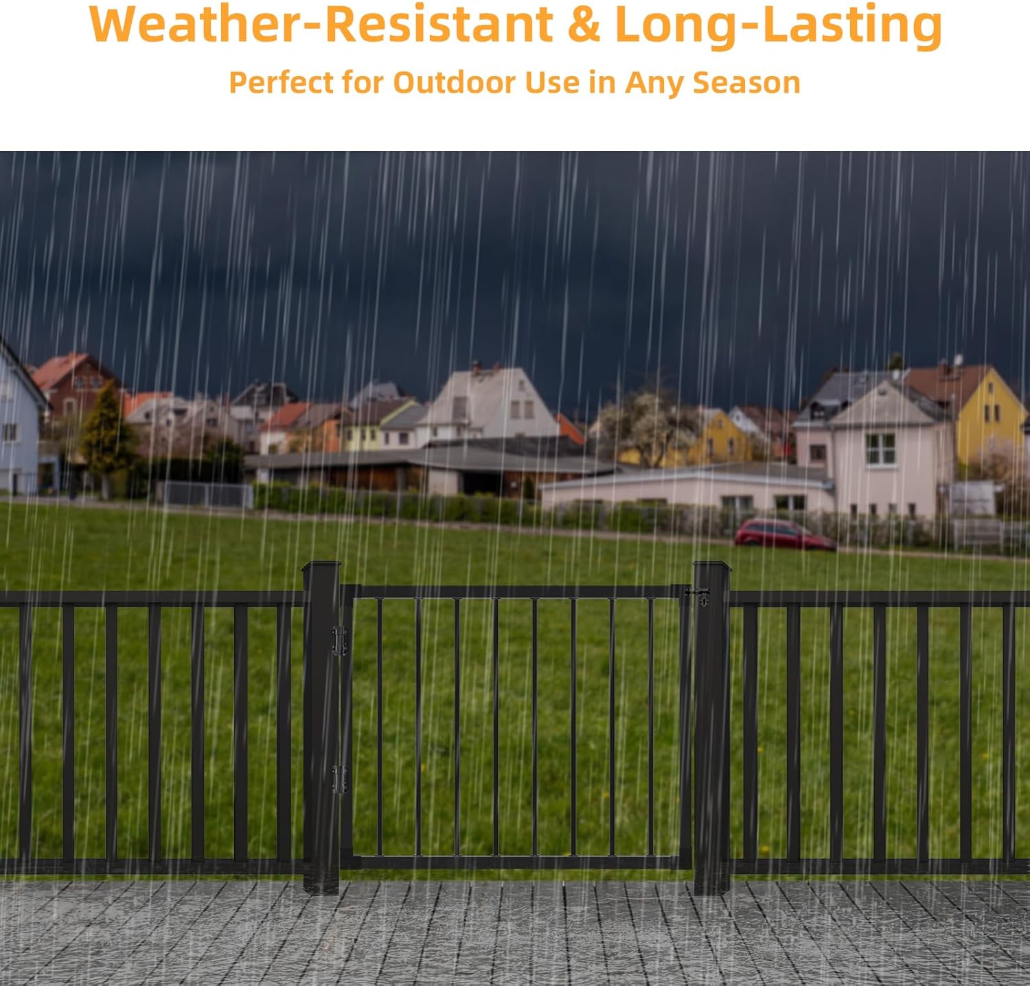 Superior Durability with Weather-Resistant Finish: Built from durable galvanized steel, this gate is designed to withstand harsh weather conditions. Finished with a rust-resistant powder coating, it’s resistant to scratches and wear, ensuring long-term durability with minimal maintenance, perfect for year-round outdoor use.