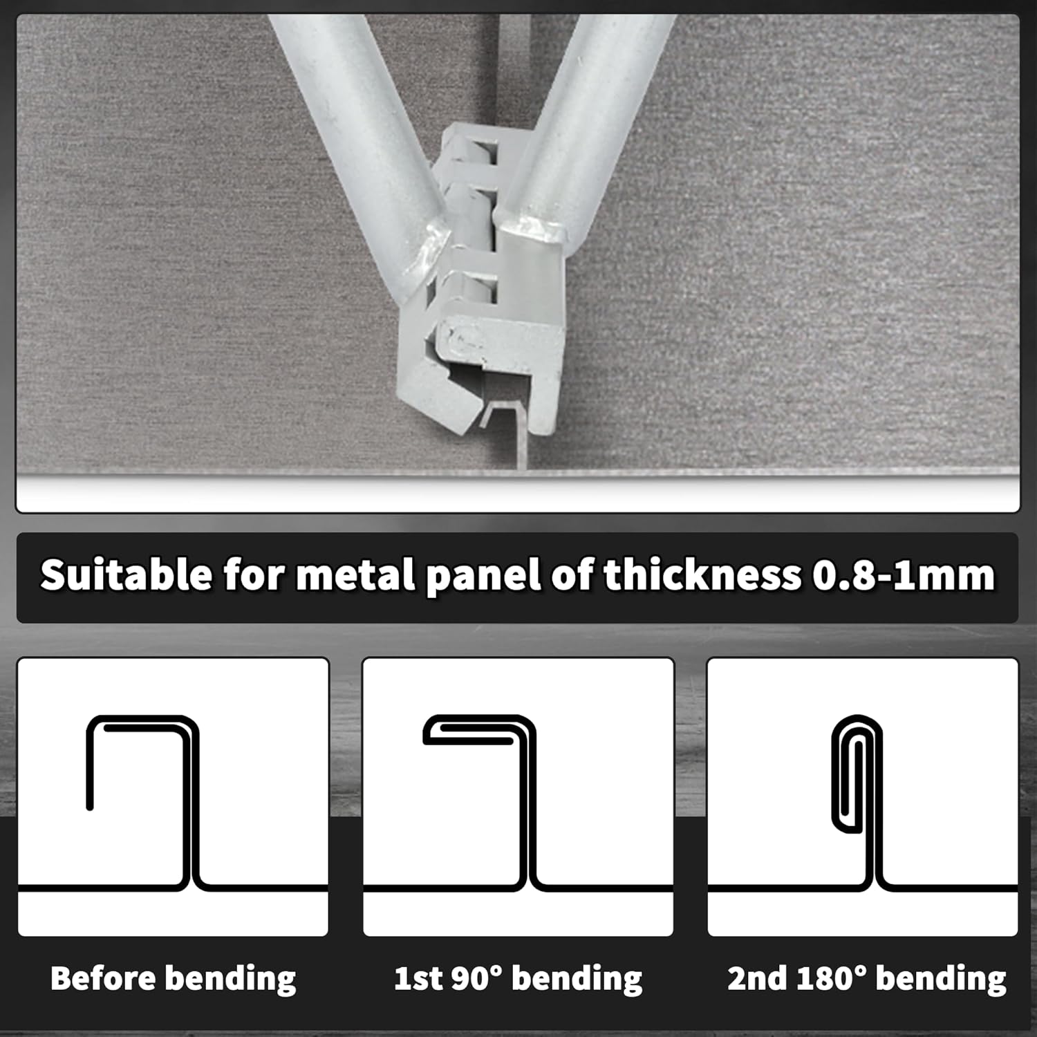 Fast and Convenient: You can complete the entire fold from 90° to 180° with just bending pliers tool. First use this tool to create the first stage fold lock, then flip the side of the tool for the second stage fold lock. One tool for two stages bend lock. With this 2-1 hand bender,you don’t have to change tool for double standing seam