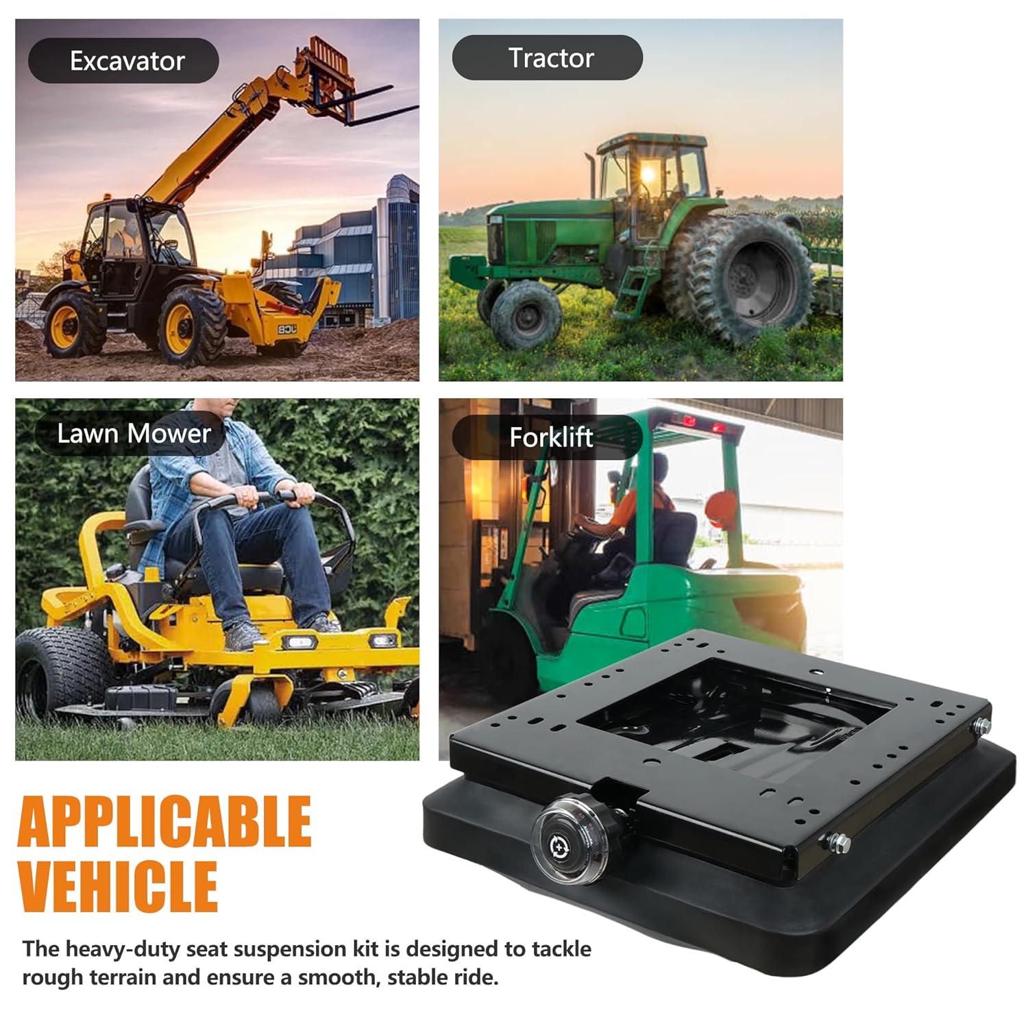 Rustproof & Wear ResistantThe suspension seat kit is constructed from heavy-duty metal and equipped with a waterproof PVC dust cover,it will provide you a long-lasting performance even in harsh outdoor conditions.