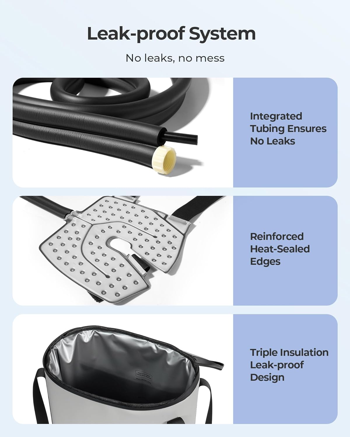 Leak-Proof by Design: No more messy spills. The cold therapy system features a fully enclosed pipeline with insulated sealing and a heat-press sealed pad to prevent water leakage during use. Stay dry and focused on your recovery, whether in bed or on the couch