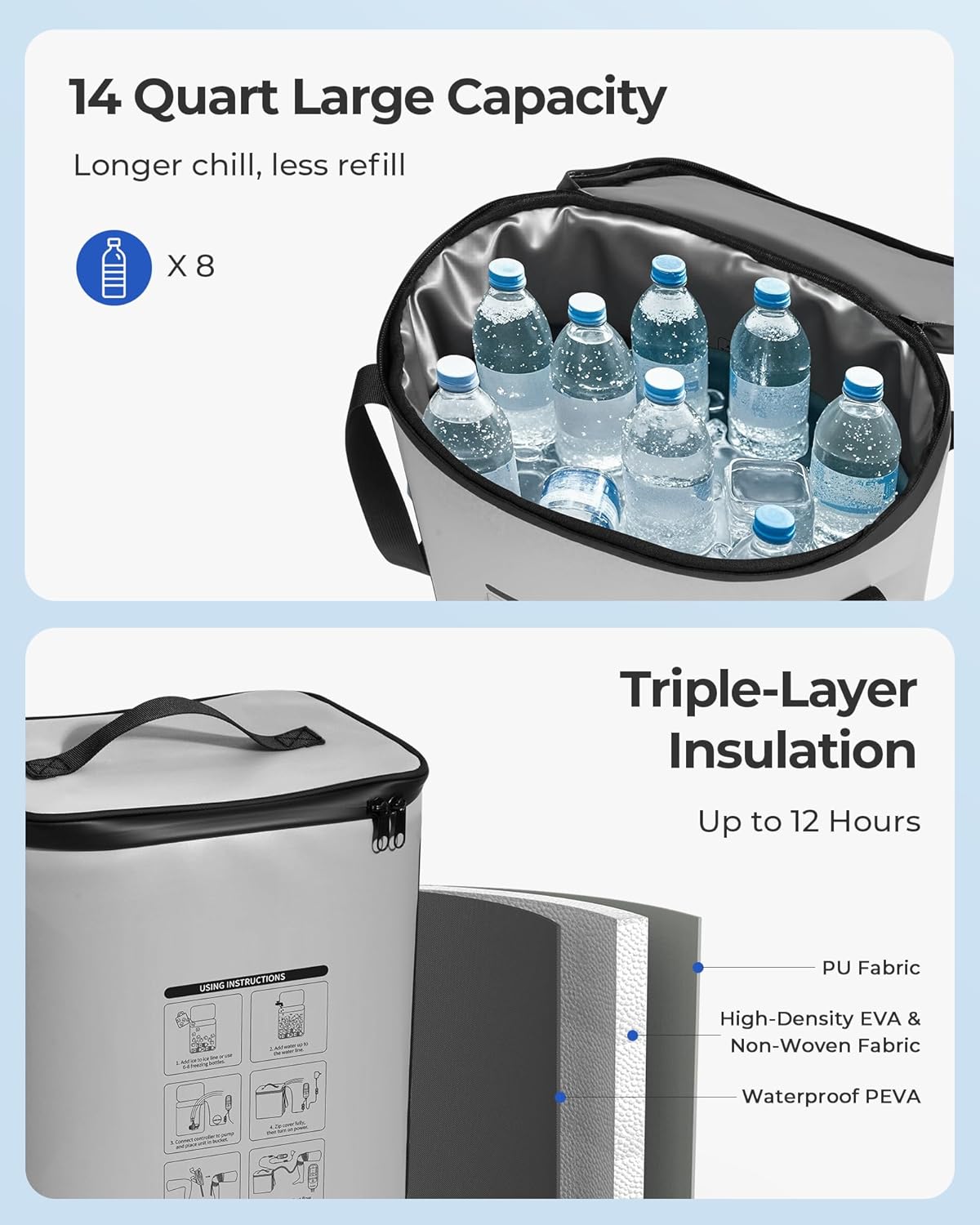 14 Quart Tank, Extended Relief: Enjoy up to 12 hours of continuous cold therapy. The 14-quart insulated reservoir minimizes refills while maintaining consistent cold water circulation—ideal for post-surgery recovery, joint pain, and inflammation management at home
