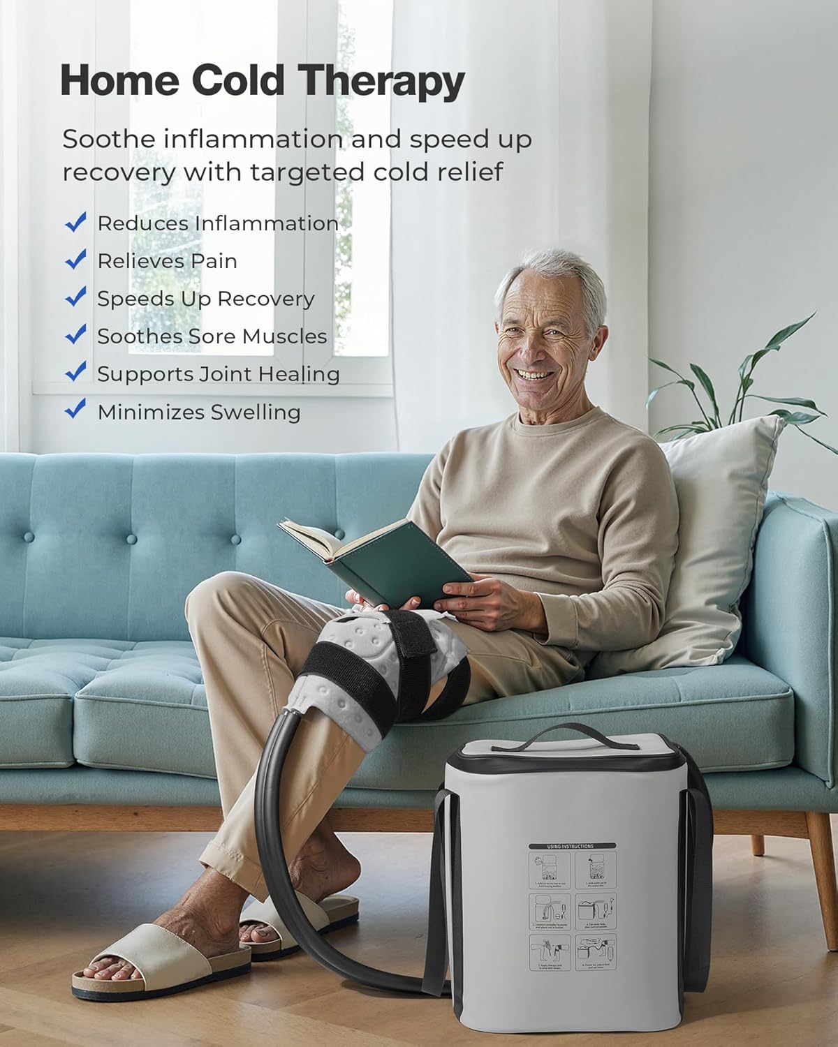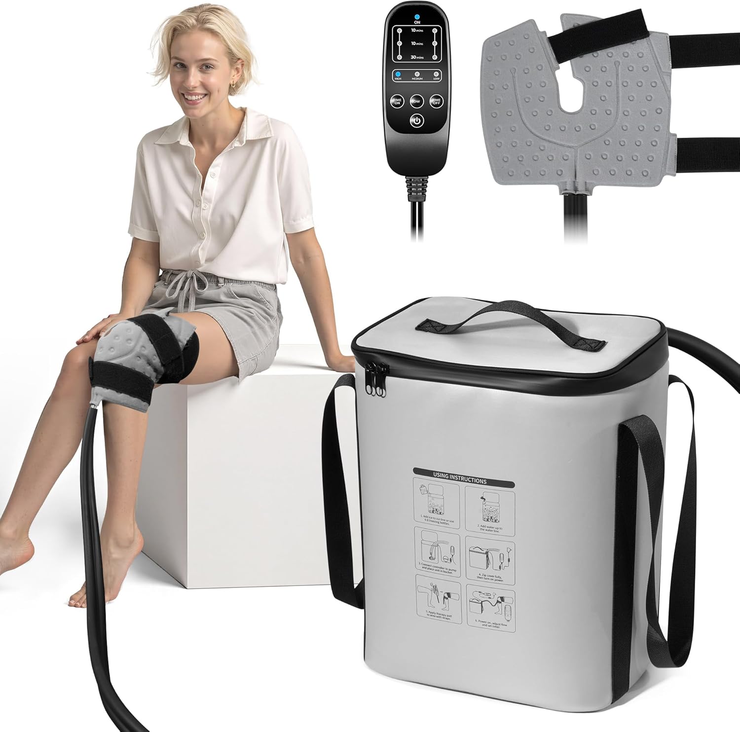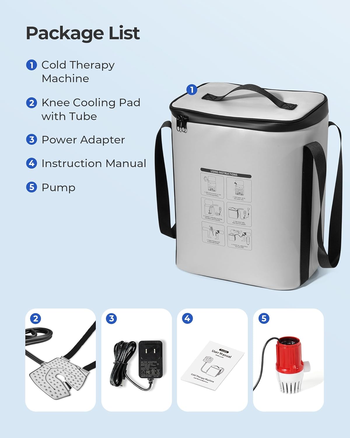 Portable and User-Friendly: Designed for home recovery, this cold therapy machine features a handle, long tube, and extended power cord for flexible setup. Easy to move and operate—perfect for post-surgery care or daily cold water therapy anywhere you need it