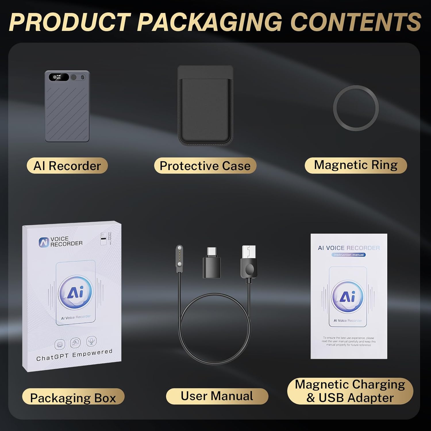 AI Voice Recorder with Case, 64GB Memory, App Control, GKP9 Recorder Transcribe/Summarize w/AI