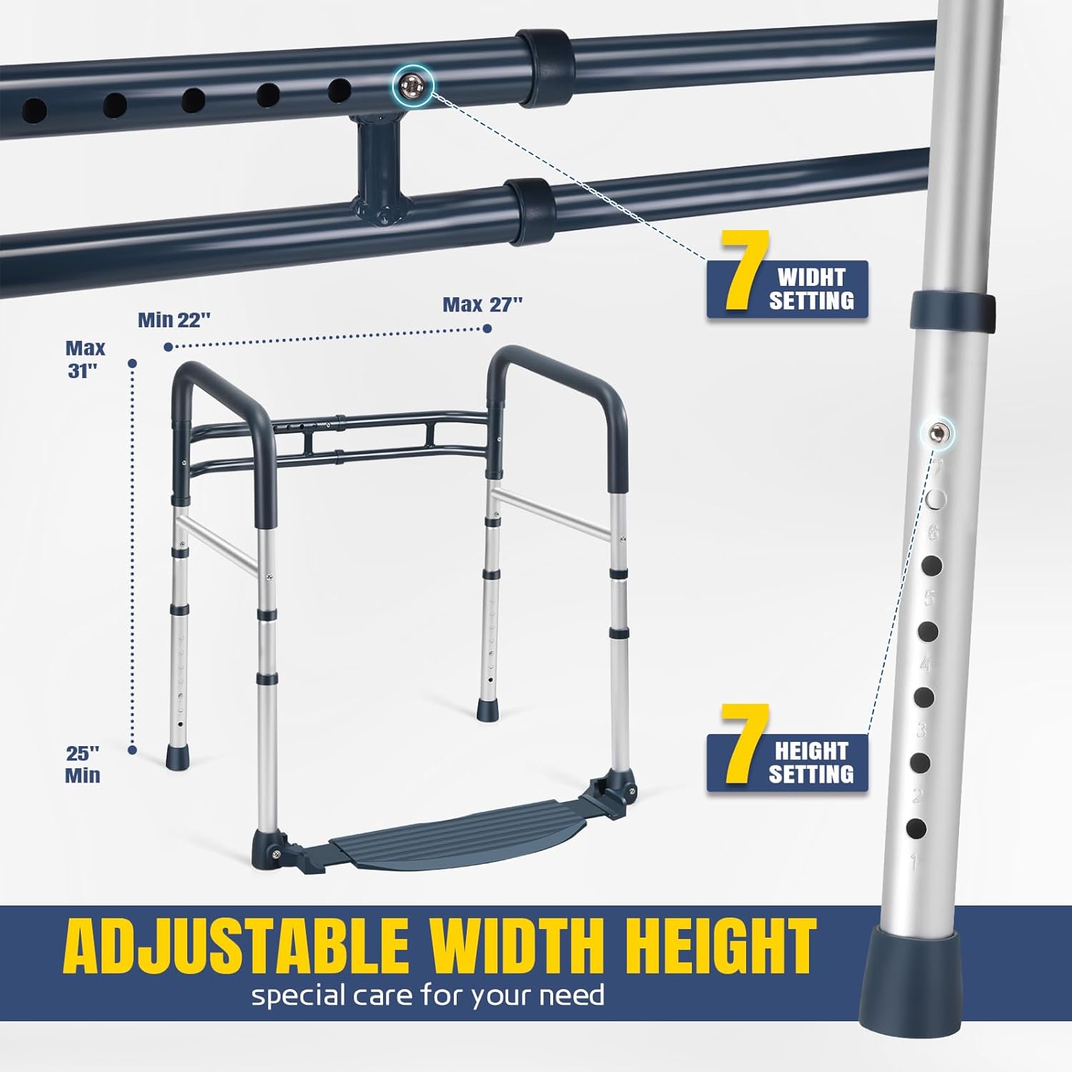 Toilet Safety Rails with Footrest, Folding, Portable Bathroom Toilet Handles for Elderly, Seniors, Disabled