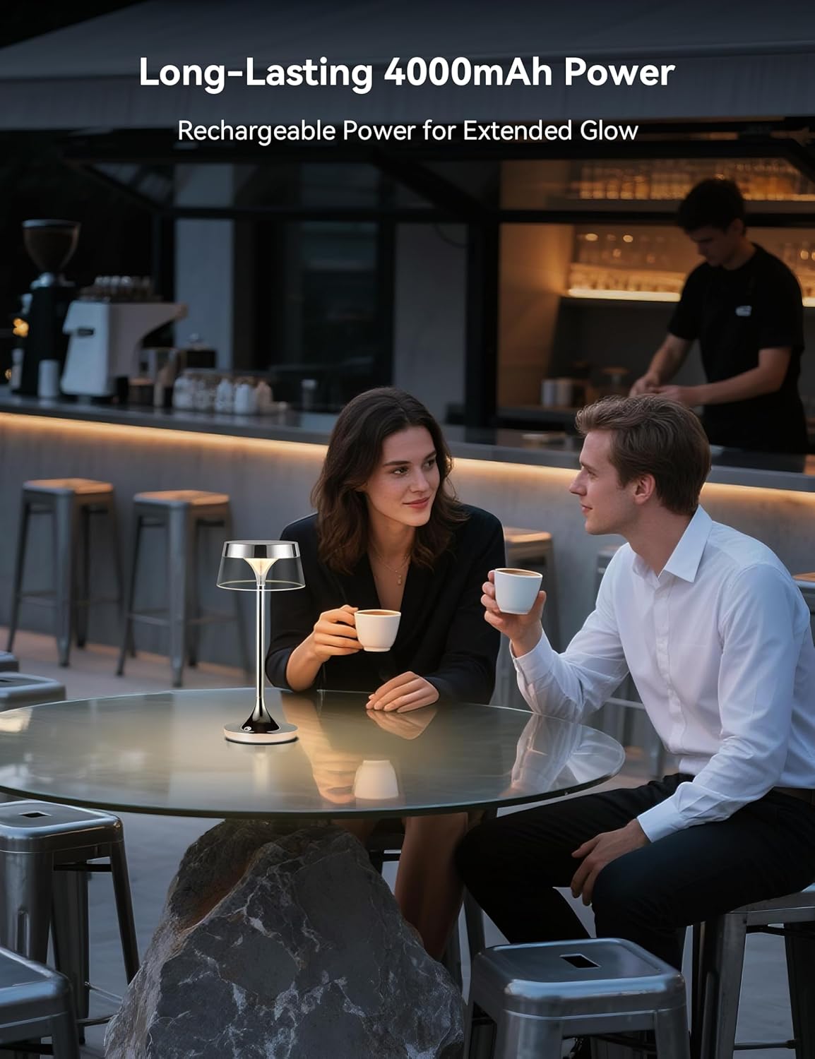 Never Left in the Dark: From surprise blackouts to backyard dinners that run late, this 4000mAh battery operated rechargeable table lamp keeps your space warmly lit for up to 45 hours. Stay connected to every moment—without worrying about finding an outlet