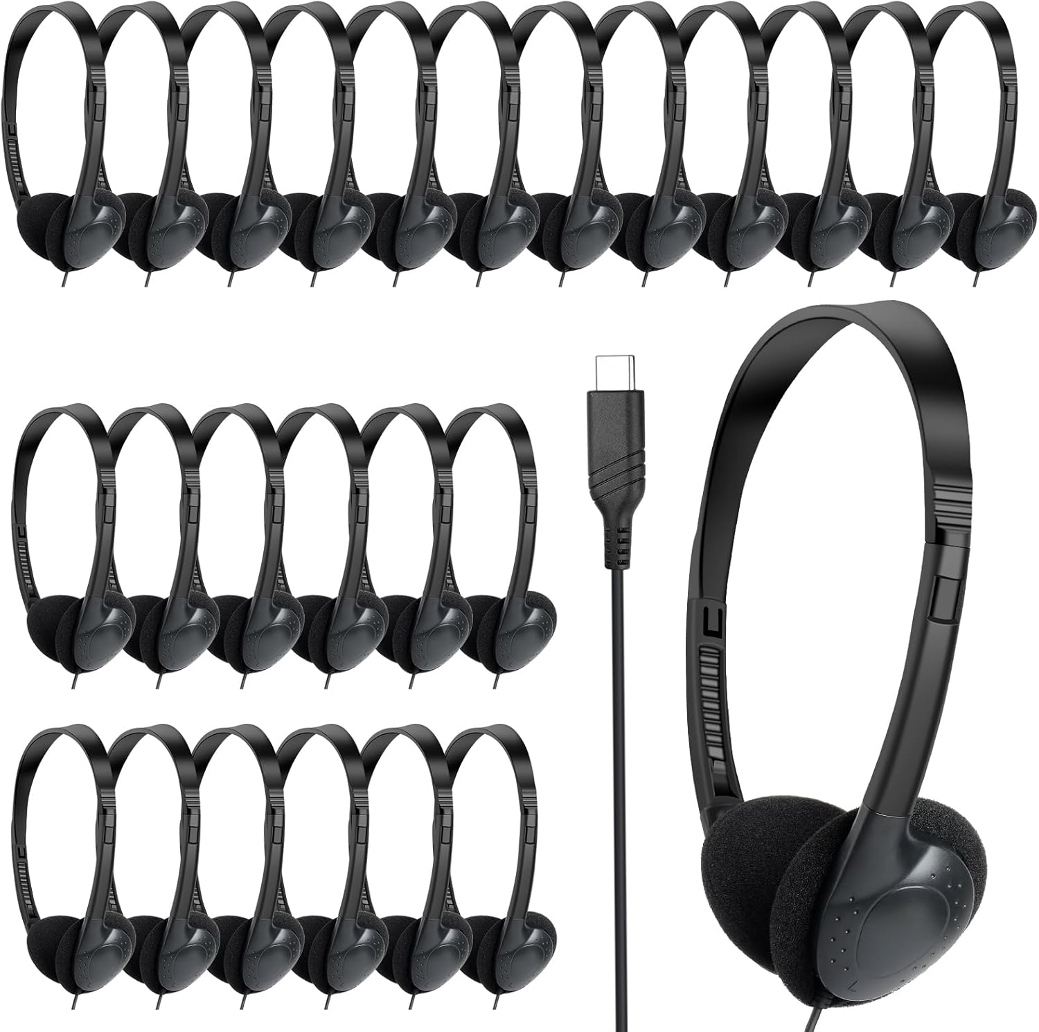 Type C Headphones Bulk for Classroom School Kids 30 Pack, USB C Wired Headphones