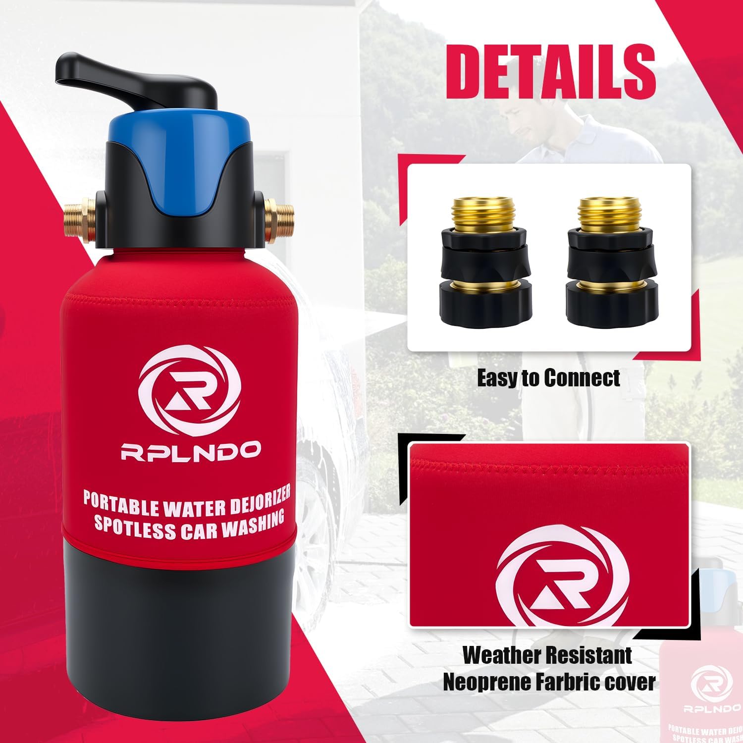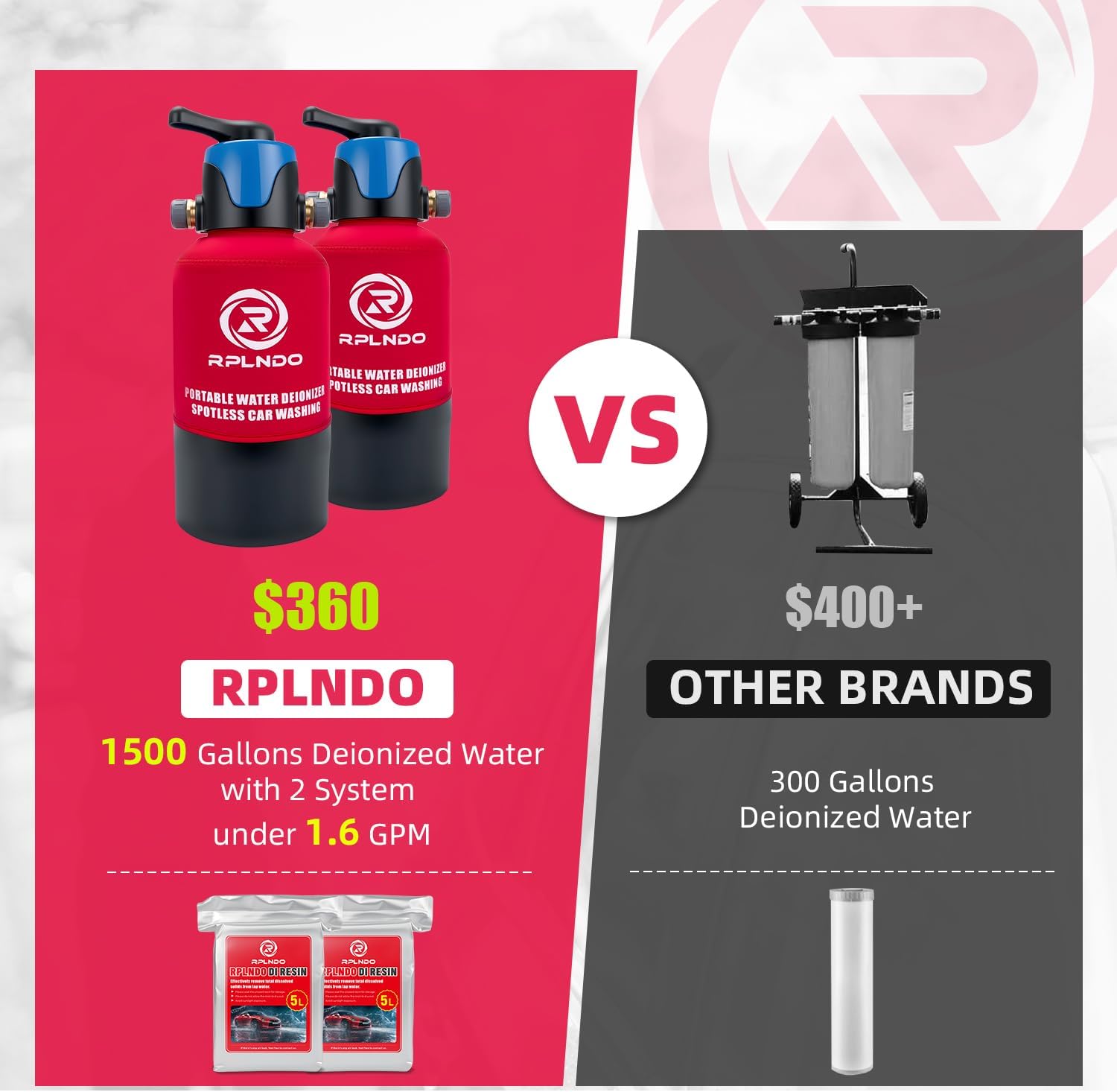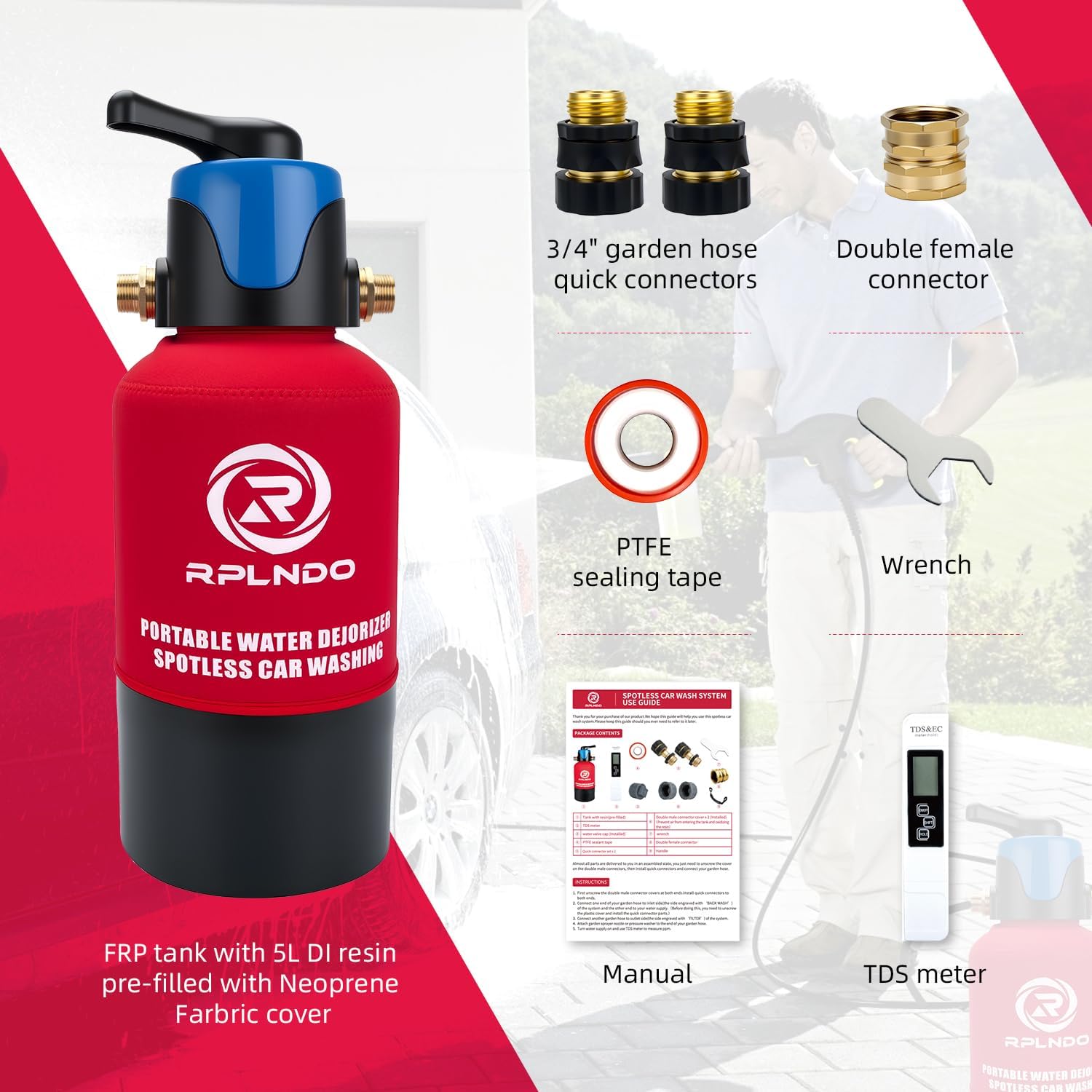 Spot-Free Rinse & Paint Protection: Our deionized water system is equipped with high-quality 5L mixed bed resin that effectively removes TDS (Total Dissolved Solids) from tap water. This helps prevent water spots after air drying, keeping your car’s paint clean, smooth, and looking like new.