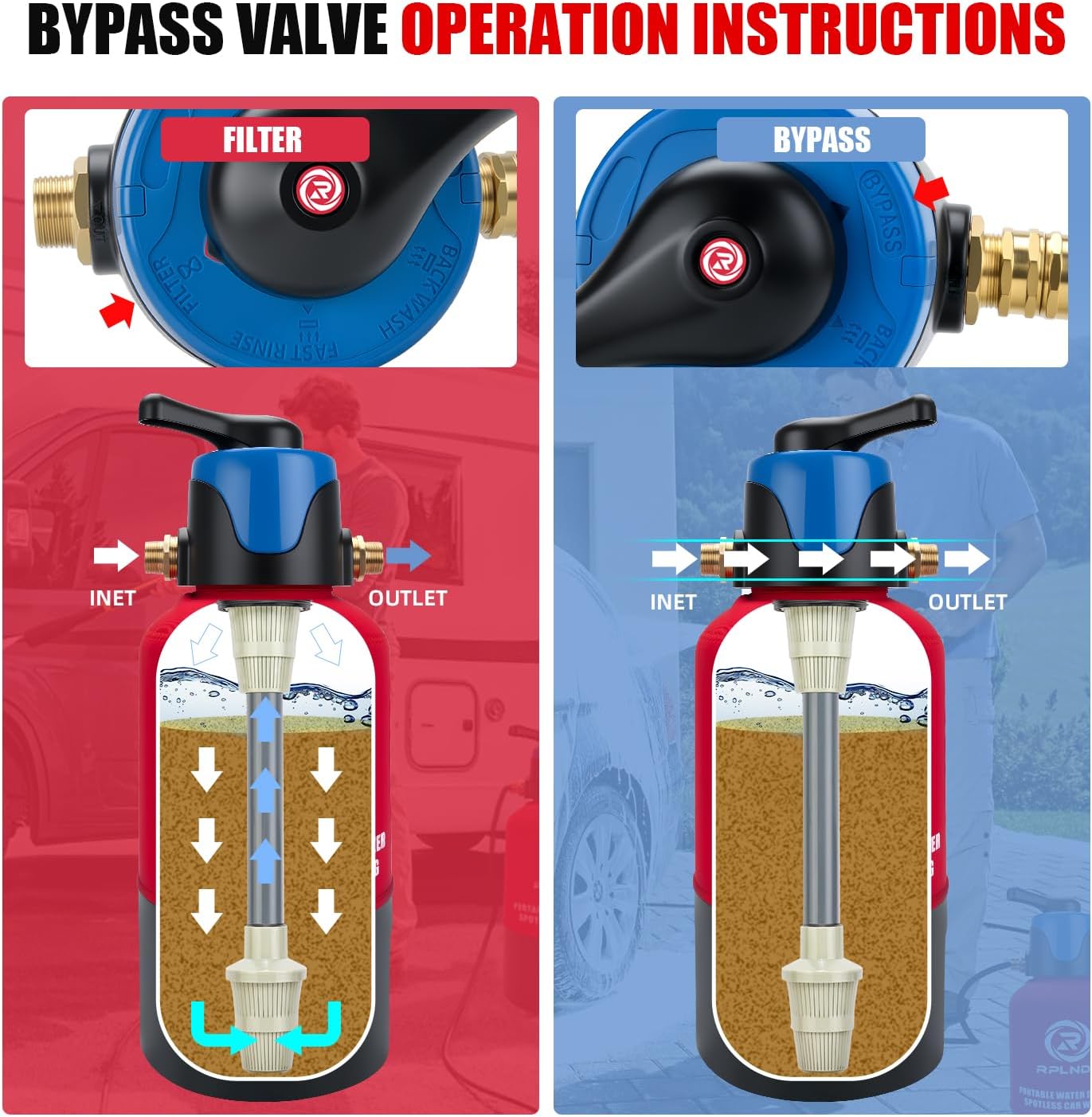 Bypass Valve for Better Efficiency; The water valve makes it easy to switch between filtered and bypass modes. For optimal resin life, we recommend using the bypass mode during general washing and switching to filtered mode only for the final rinse. A TDS meter is also included so you can easily check the water quality.
