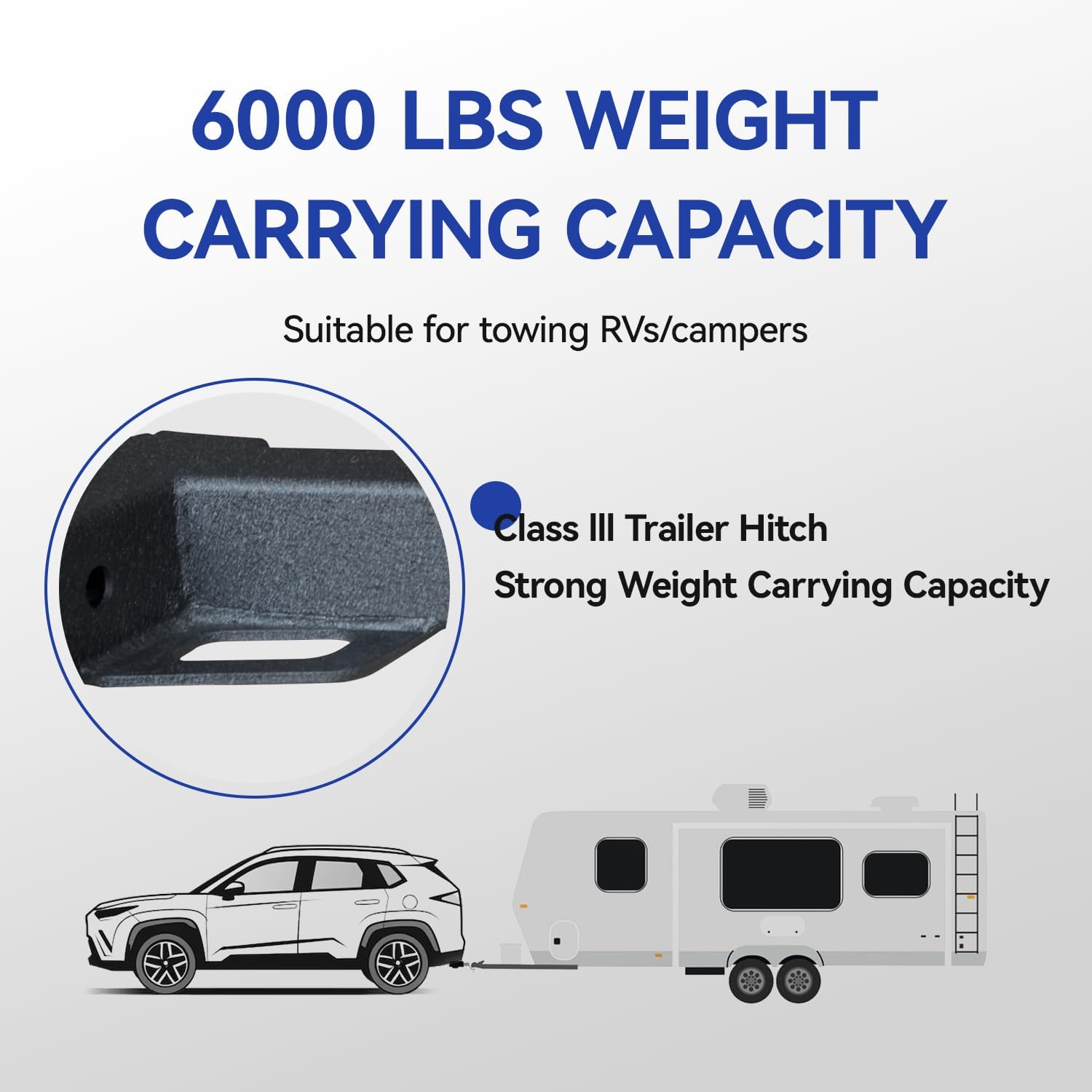 High hardness trailer hitch is used to complete some towing activities. Carrying Weight (WC): Up to 300/2,000 lbs (TW/GTW) and Weight Distribution (WD): Up to 500/7,000 lbs (TW/GTW). Widely used in your daily towing work.