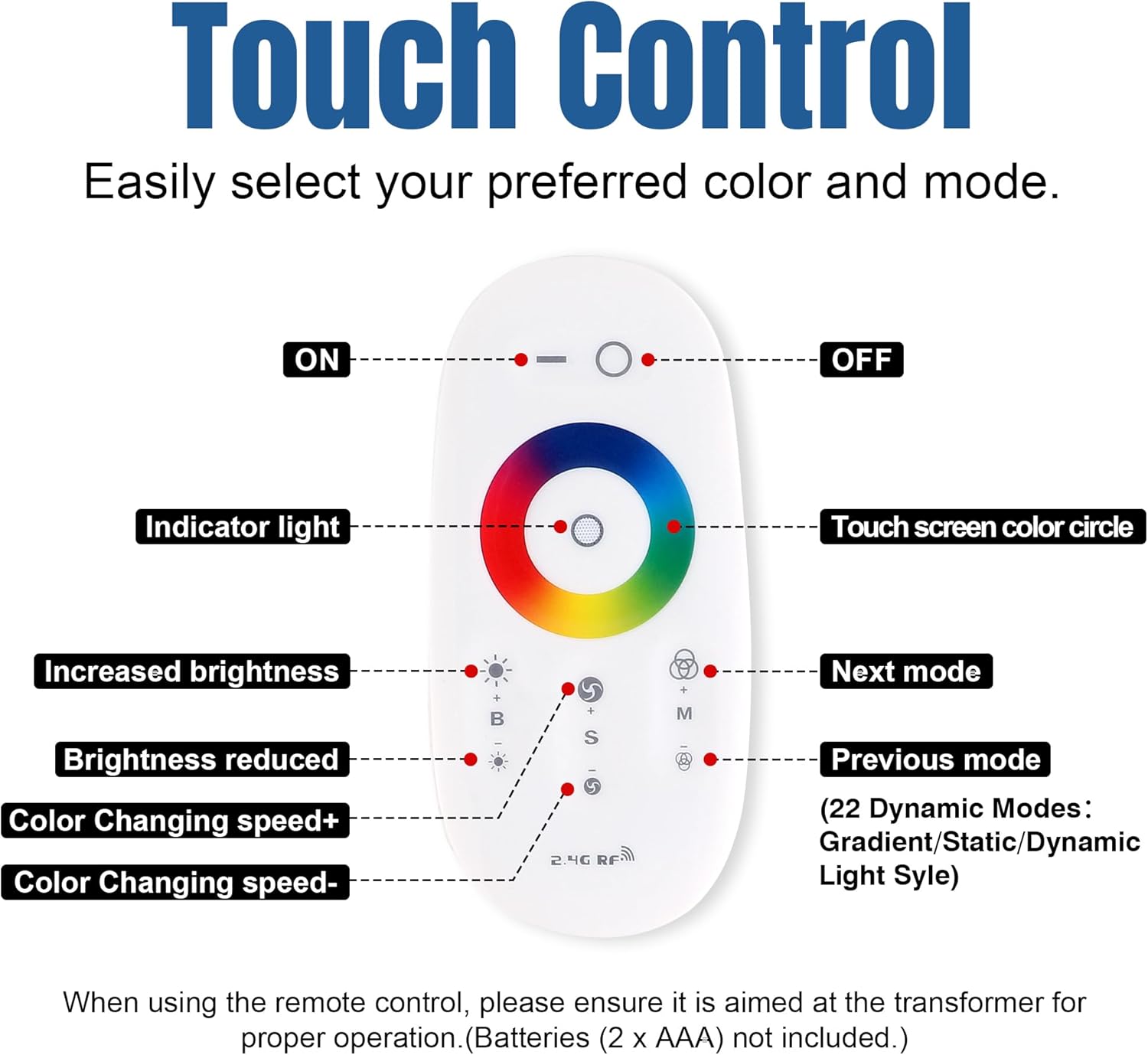 Effortlessly control your lighting from up to 180 feet away. Choose from a variety of static and dynamic modes, featuring over 16 colors, flashing effects, jumping transitions, and solid color options. Transform your pool into a stunning visual experience