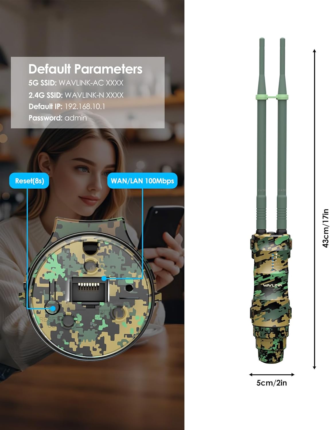 AC1200 Long Range WiFi Extender The wifi extender outdoor speeds up to 1200Mbps(300Mbps on 2.4GHz + 867Mbps on 5GHz), perfect for HD streaming, competitive gaming, and heavy downloads. Designed as outdoor access point for backyard, pools, and detached garages