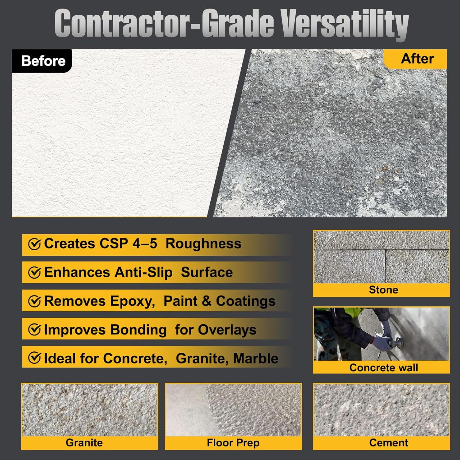 [Surface Texturing & CSP 4–5] Achieve anti-slip roughness profile.Ideal for preparing concrete and stone before overlays or coatings