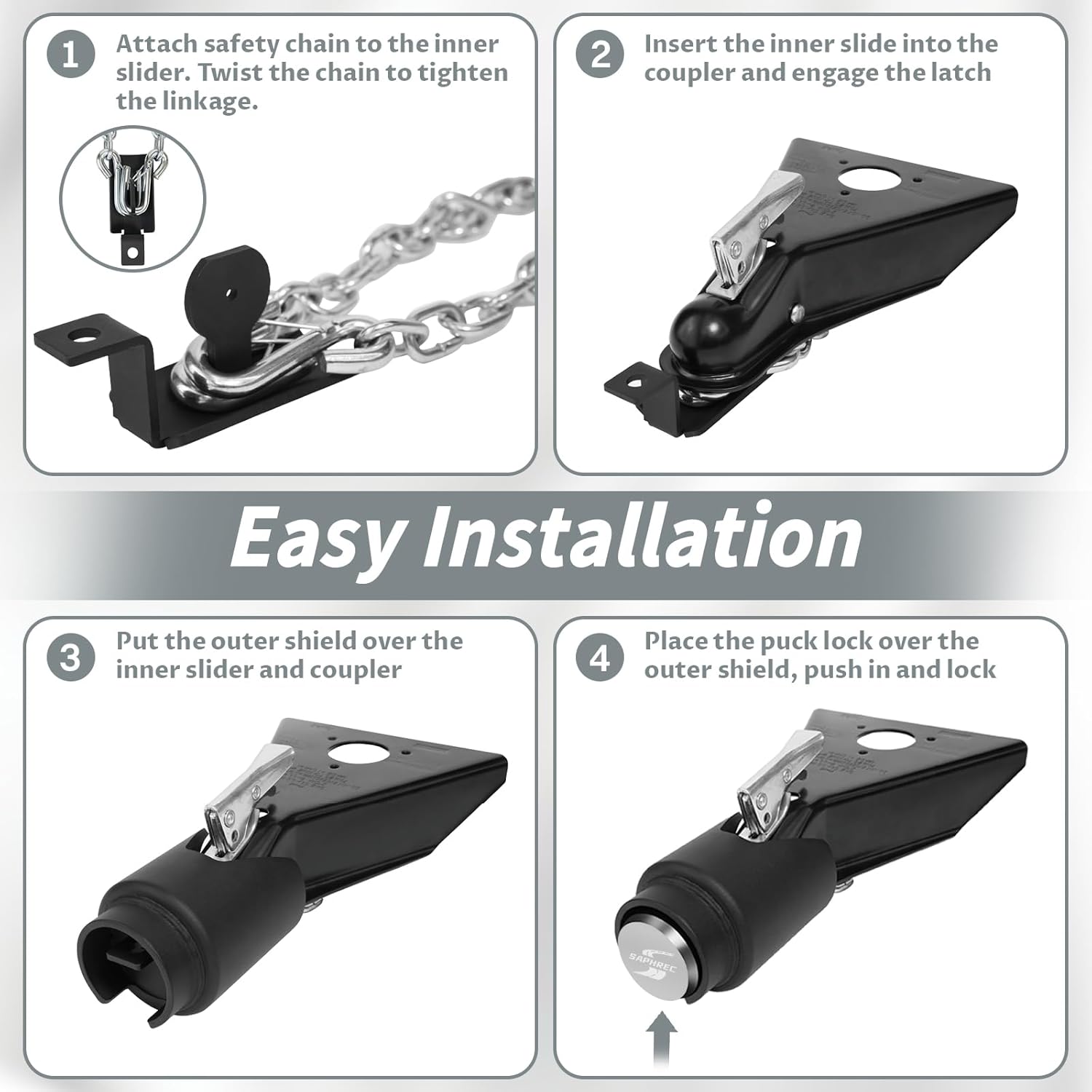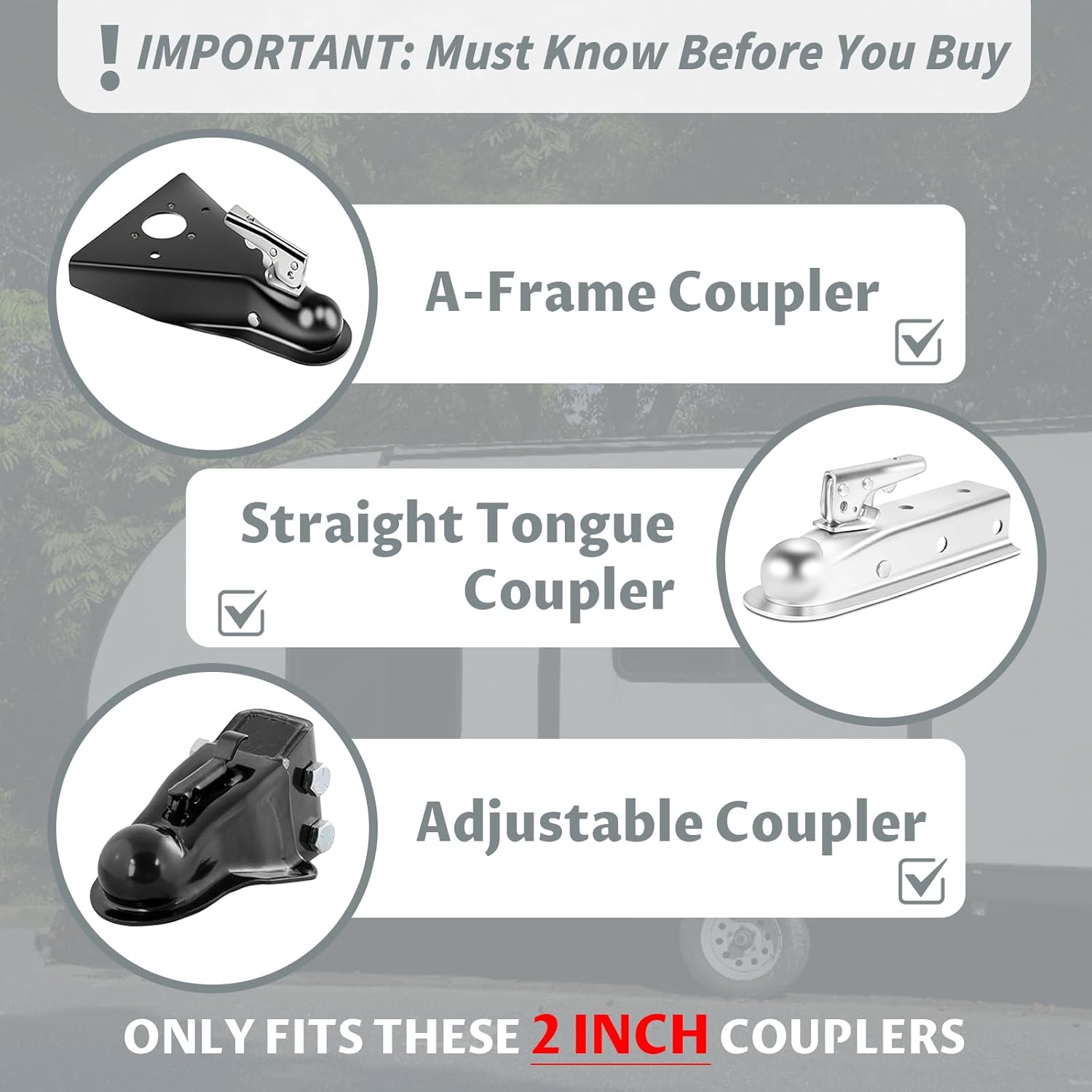 CompatibilityIMPORTANT - please note that our trailer coupler lock ONLY fits 2 Inch coupler for a secure and tight fit. Please check your coupler size and choose the right product size.