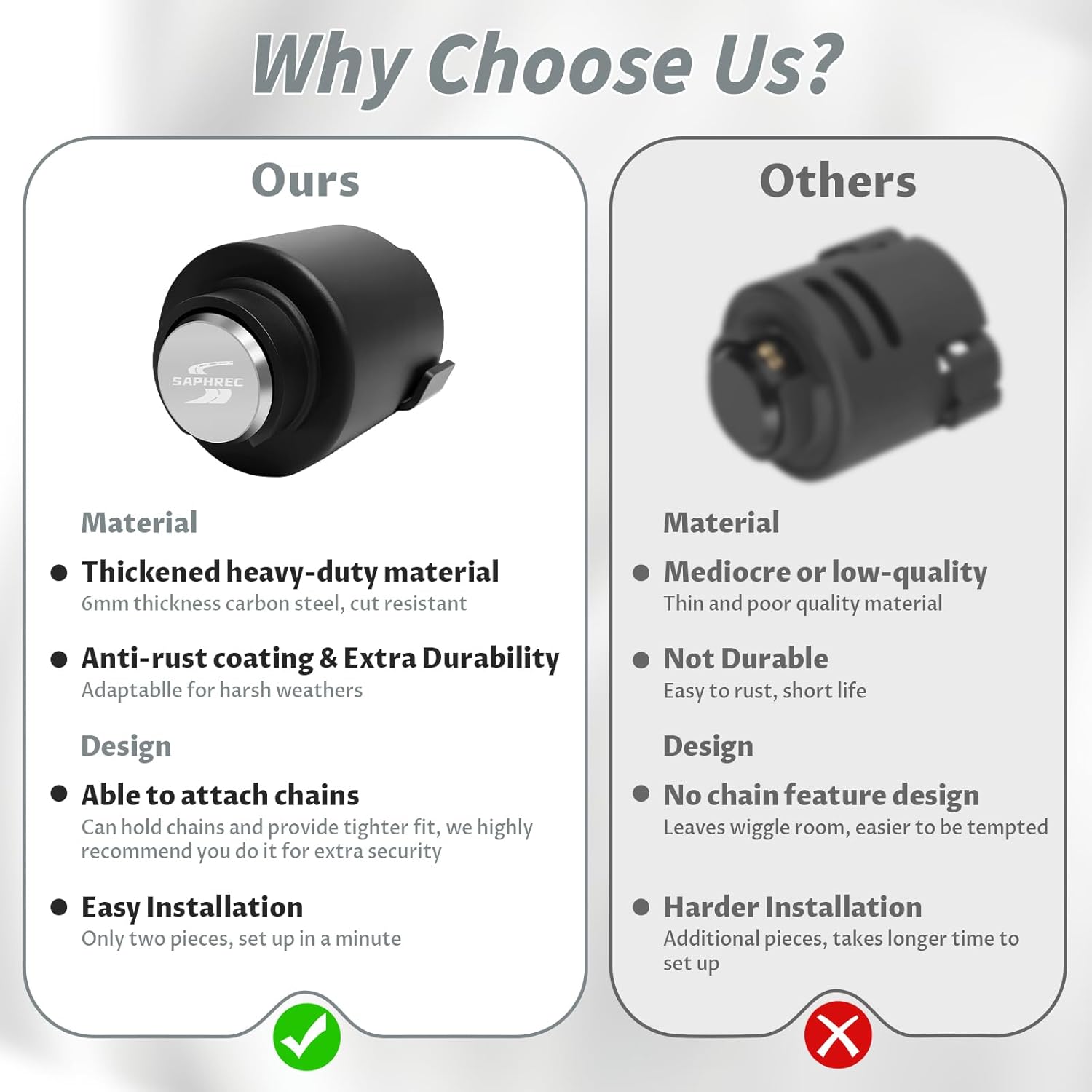 Heavy Duty MaterialThe SaphRec Trailer Lock is constructed from high-strength carbon steel, with a thickness of 0.23 inches, ensuring superior durability and resistance to impact. Weighing 10.7 lbs, this hardened trailer hitch lock offers robust protection against theft. Additionally, it features a high-quality powder coating that provides reliable rust-resistance, making it suitable for all weather conditions.