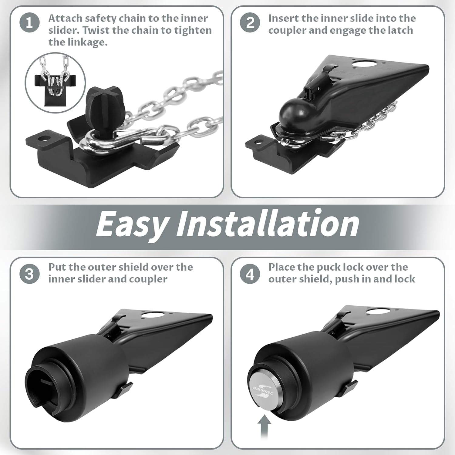 CompatibilityIMPORTANT - please note that our trailer coupler lock ONLY fits 2-5/16 Inch coupler for a secure and tight fit. Please check your coupler size and choose the right product size before purchasing.