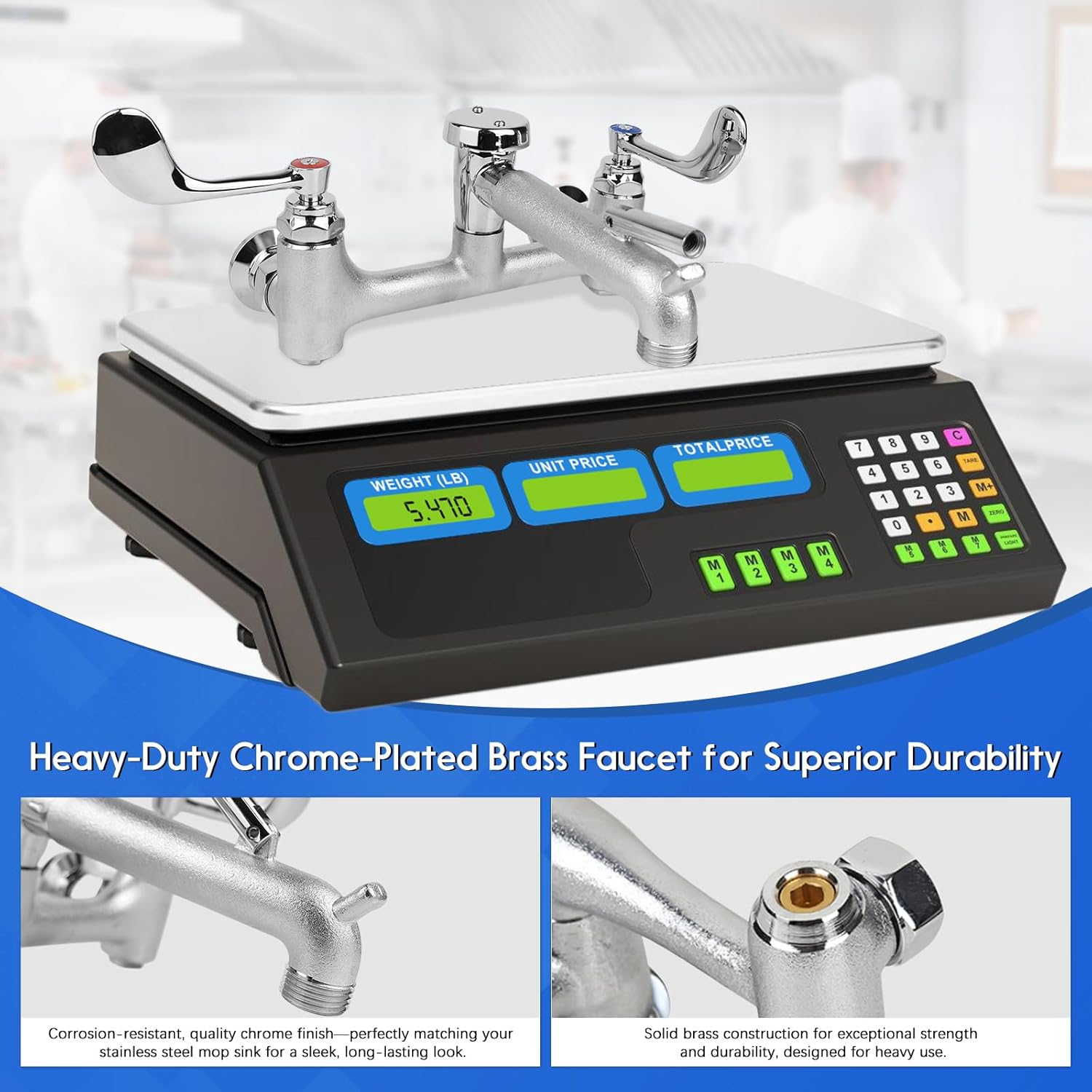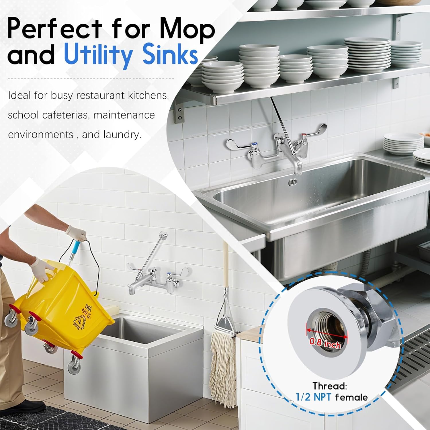 Commercial Mop Sink Faucet, Wall Mount Service Sink Faucet, 8 Inch Adjustable Center, Pail Hook