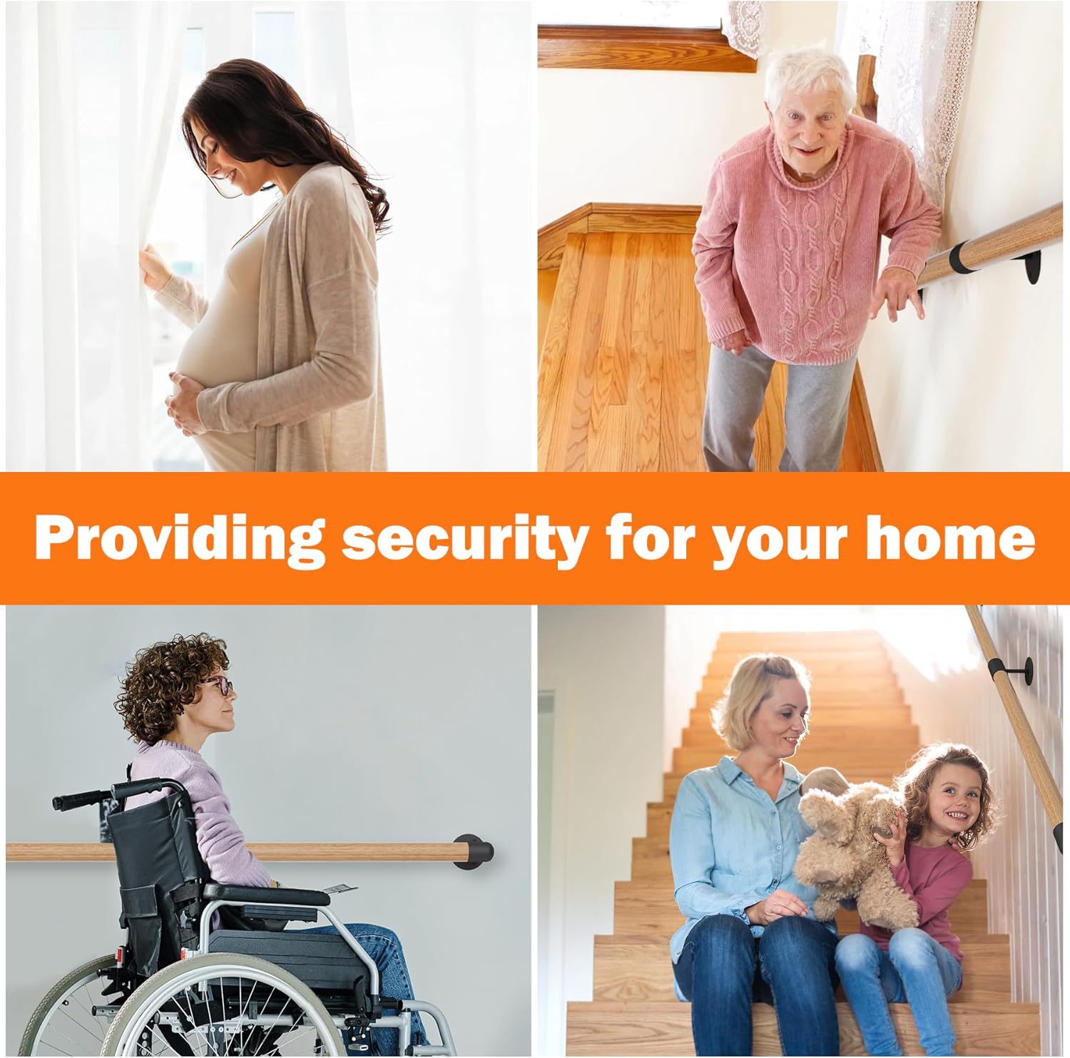 Strong & Durable Handrails: indoor wooden stair handrail is made of high-quality pine wood, with a solid texture and not easy to deform.The hand-polished surface is smooth,natural and beautiful texture.The metal base edges are rounded for easy grip.The surface of the stair handrail is environmentally friendly coating, resistant to water absorption and easy to clean