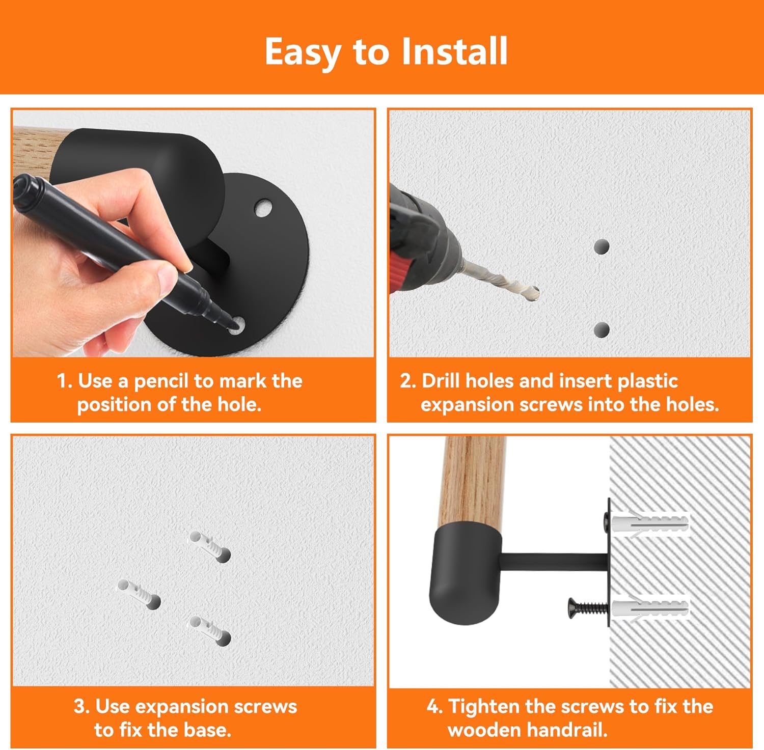 Easy to Install:The wall-mounted round wood stair handrail has accessories including stainless steel brackets, and screws. Just use a pencil to mark theposition, drill holes and insert plasticexpansion screws, fix brackets and tighten handrails, and the height can be freely adjusted according to your needs.