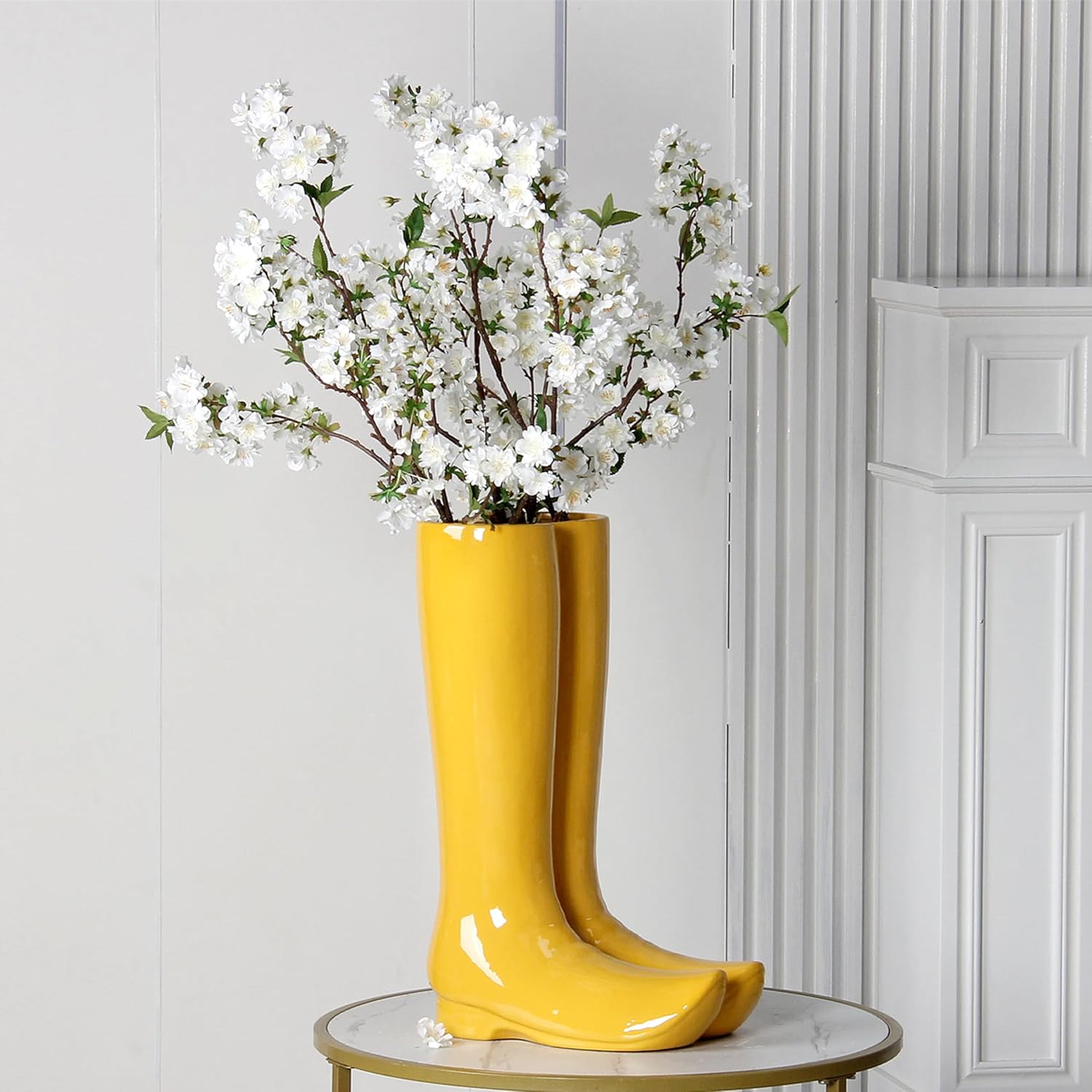 Ceramic Boot Umbrella Stand, Boots Vase, Freestanding Umbrella Bucket, Yellow
