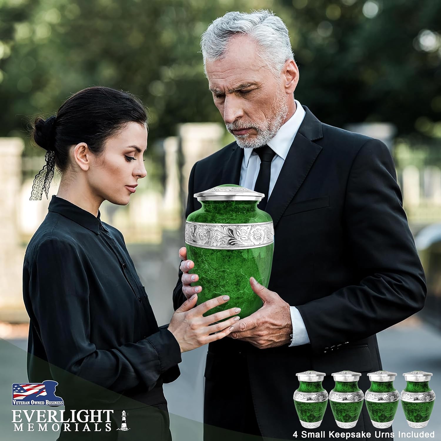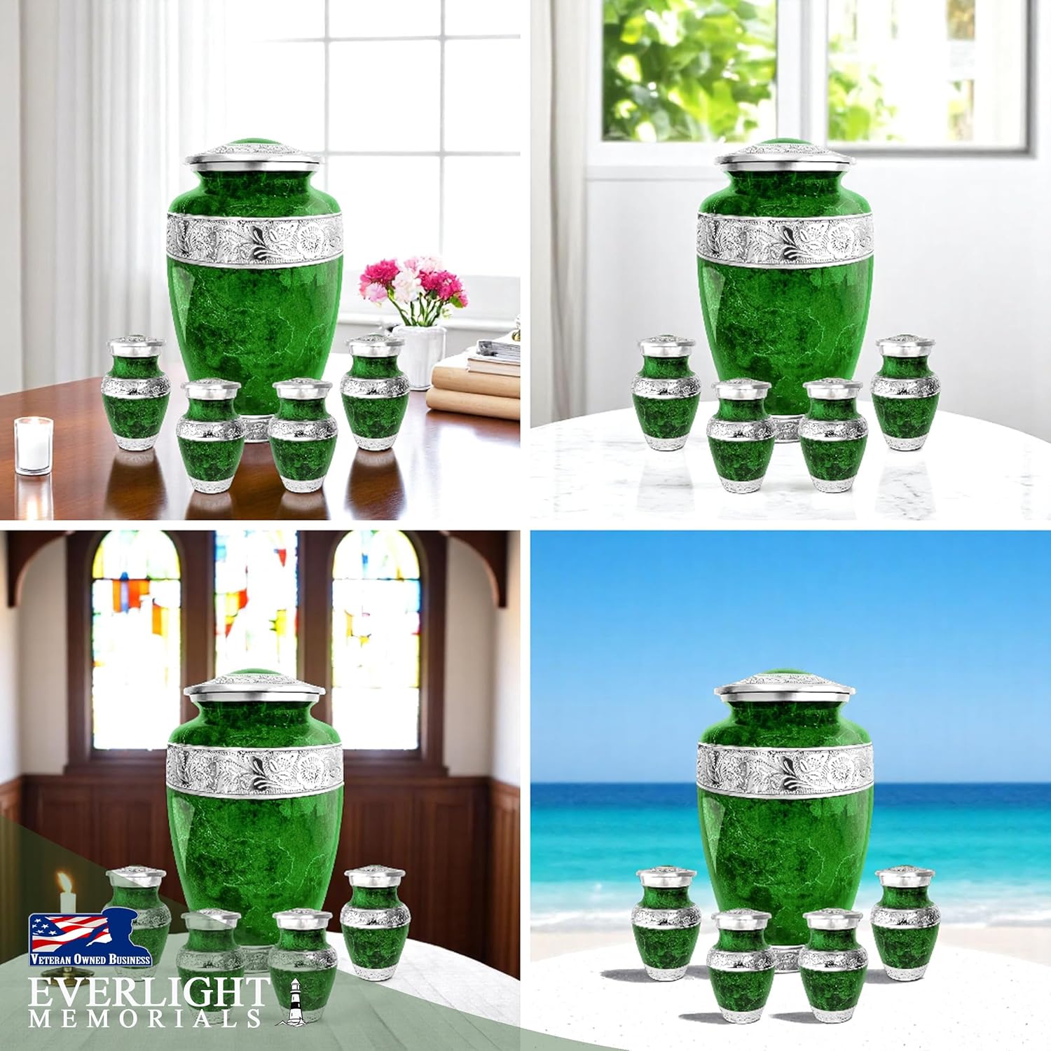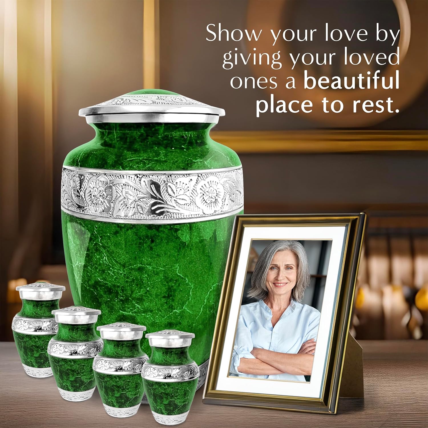 Green Marble Adult Cremation Urn Set with 4 Keepsakes, Decorative Funeral Urn for Men and Women