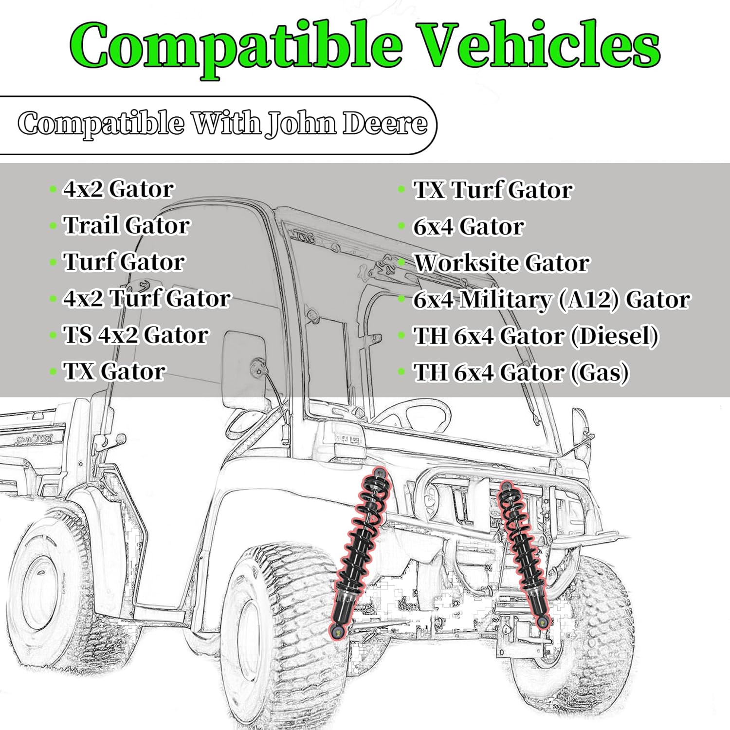 Perfect Fit for John Deere Gator Series - This AM130448 Front Shock Absorber is designed for John Deere ATV/UTV models including M Gator (A1), TH/TX 6X4/4X2 Gator (Diesel/Gas), HPX, Trail & Worksite variants. Guaranteed OEM compatibility for seamless performance.