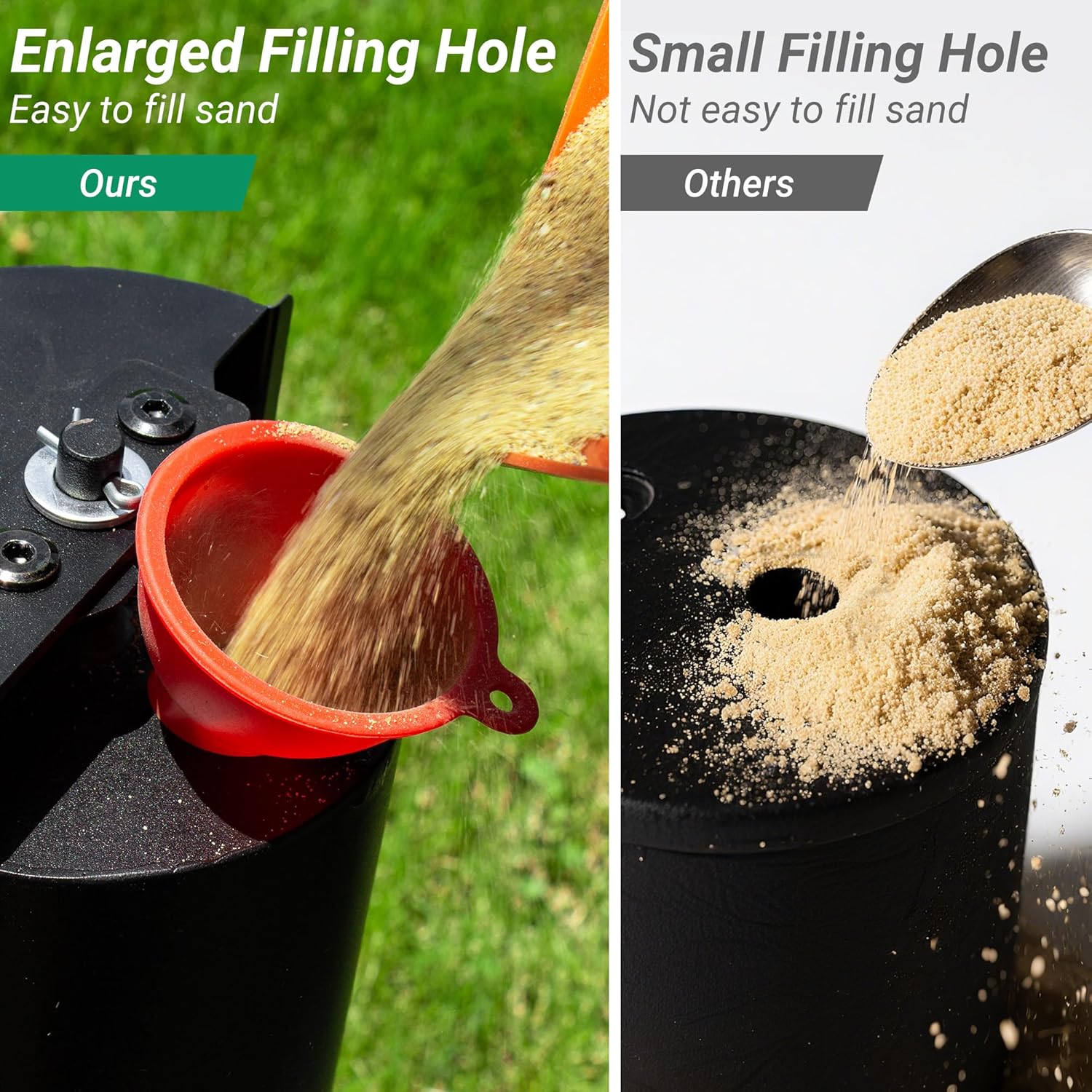 Quick & Easy Sand Filling: No more messy spills or tiny fill holes. This lawn striping system features a large 1.4-inch filling port plus a handy funnel to make filling with sand faster, cleaner, and easier. With its bigger roller capacity, you can fill up to 28.6–30.8lbs of sand — far more than the average 19.8lbs rollers, giving you deeper, longer-lasting grass stripes that look sharp and professional. Get the perfect weight for bold striping results every time you mow.