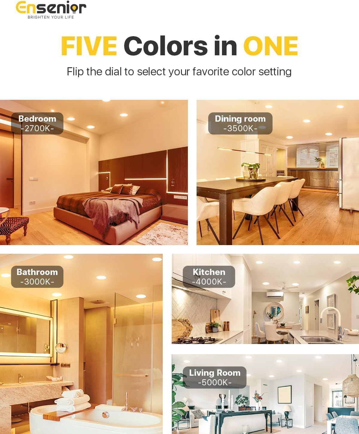 5CCT DownlightOur slim recessed light in downlight mode offers you the option of 2700K, 3000K, 3500K, 4000K, 5000K, please just choose your favorite color temps before install into ceiling. Suitable for living room, bedroom, dining room, bathroom, home office, porch, kitchen, etc.