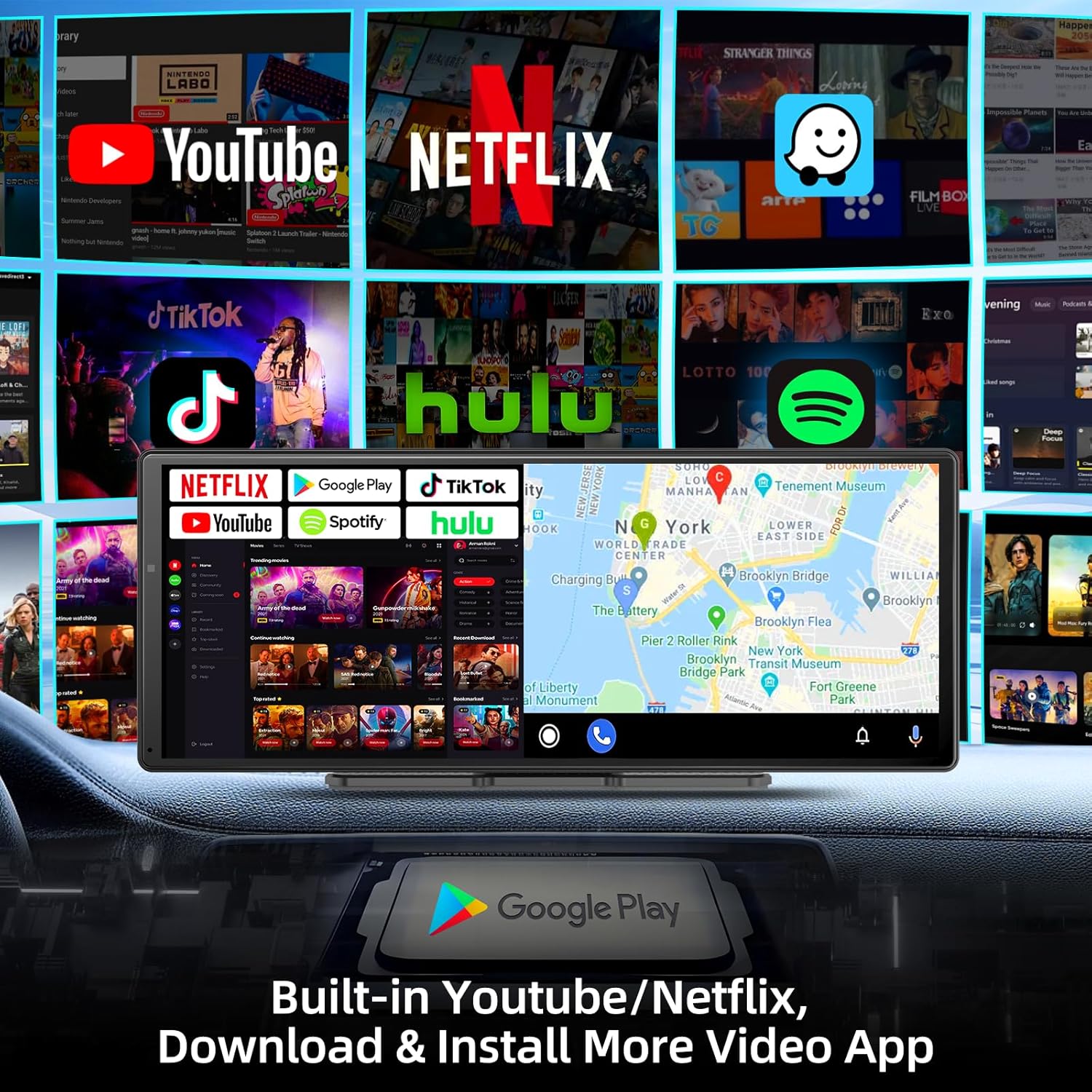 Large 11.3 inch [Android 8 Core 4+64GB] Carplay Screen, Android Auto for Car, with 1080P Rear Camera