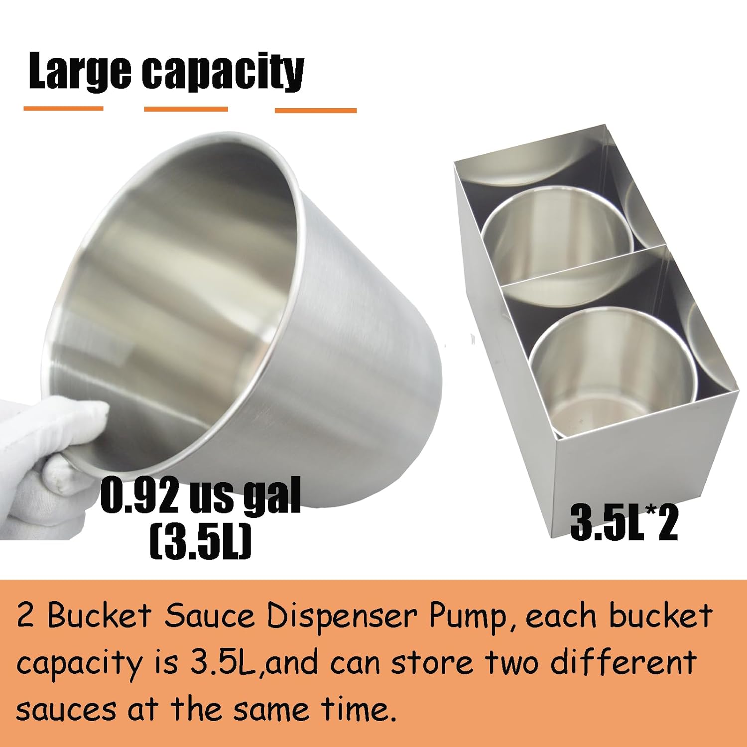 Large capacityThe capacity of sauce pump is 3.5L/pc,total capacity is 3.5L*2, and can store two different sauces at the same time,which avoid the trouble of frequent replacement and make the sauce pump using more convenient.