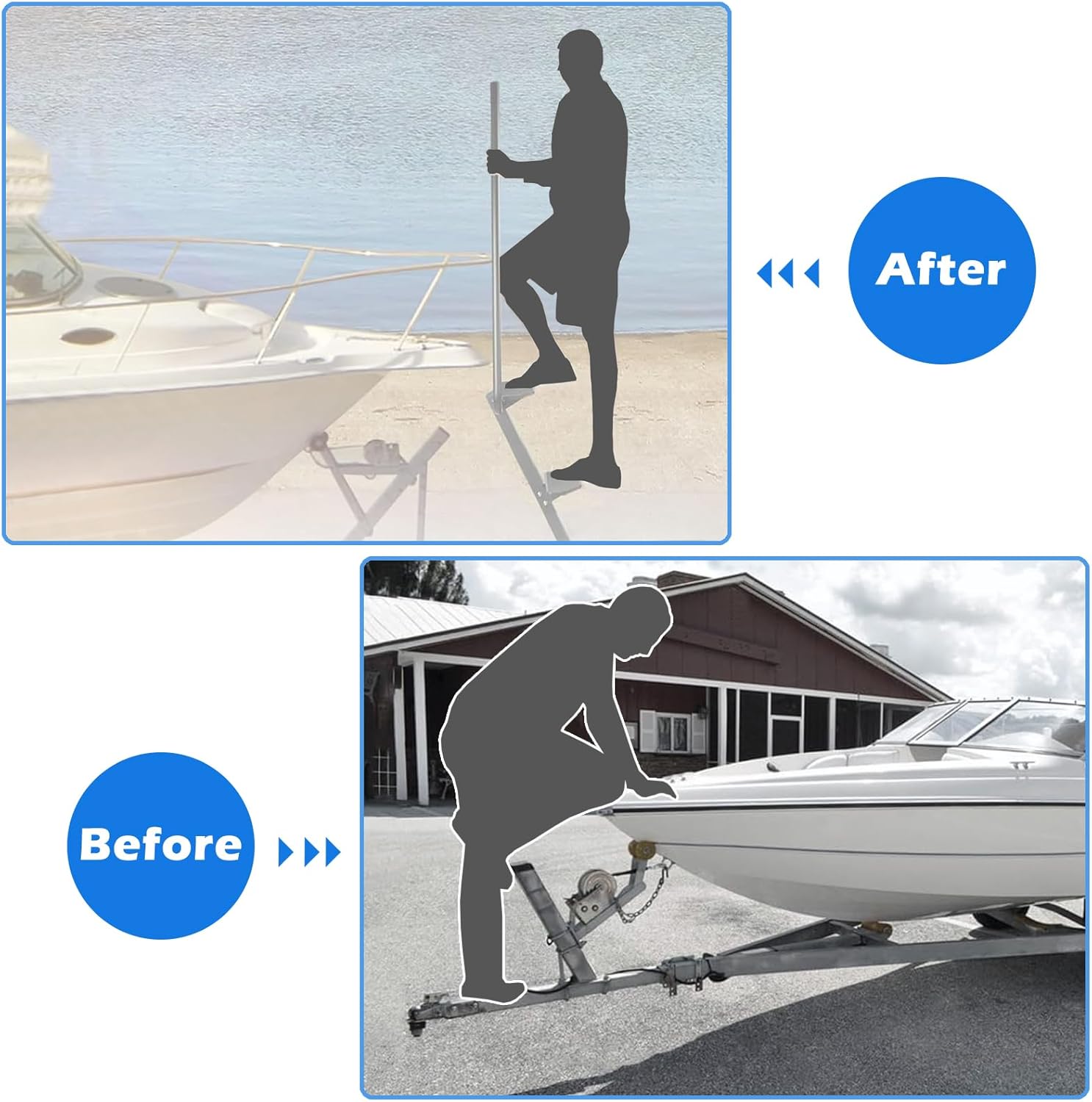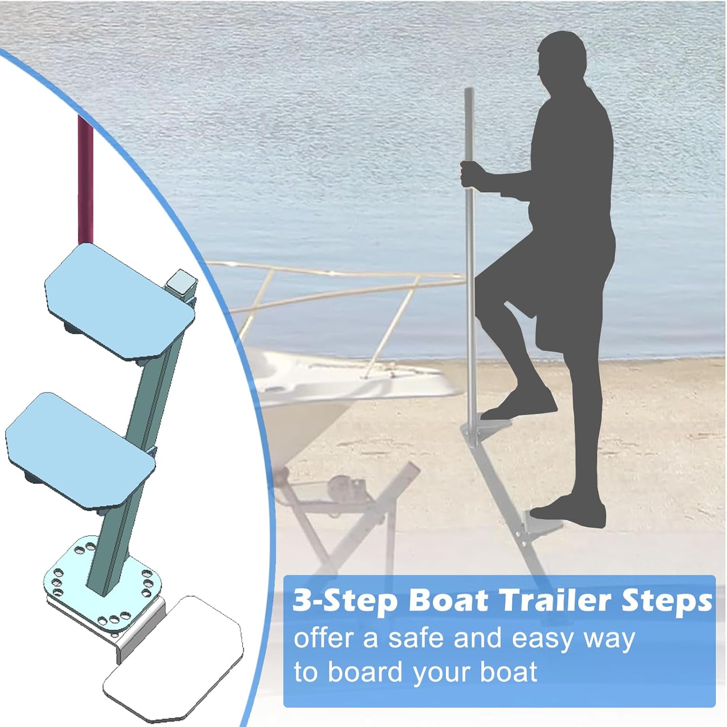 EASY INSTALLATION: Our 3 step boat trailer steps` assembly process is surprisingly simple and easy to set up,come with all mounting accessories and an installation manual.Just simply follow the instructions,you can securely mounted it to your boat trailer in a few minutes. Since it`s a heavy-duty step and may take some effort