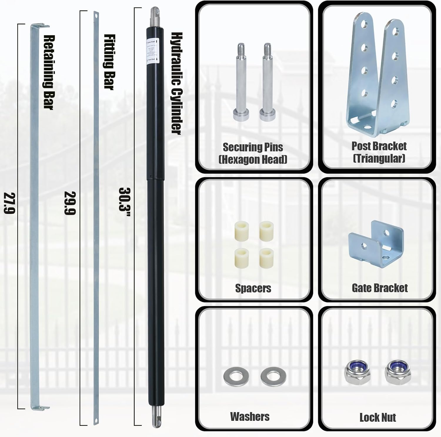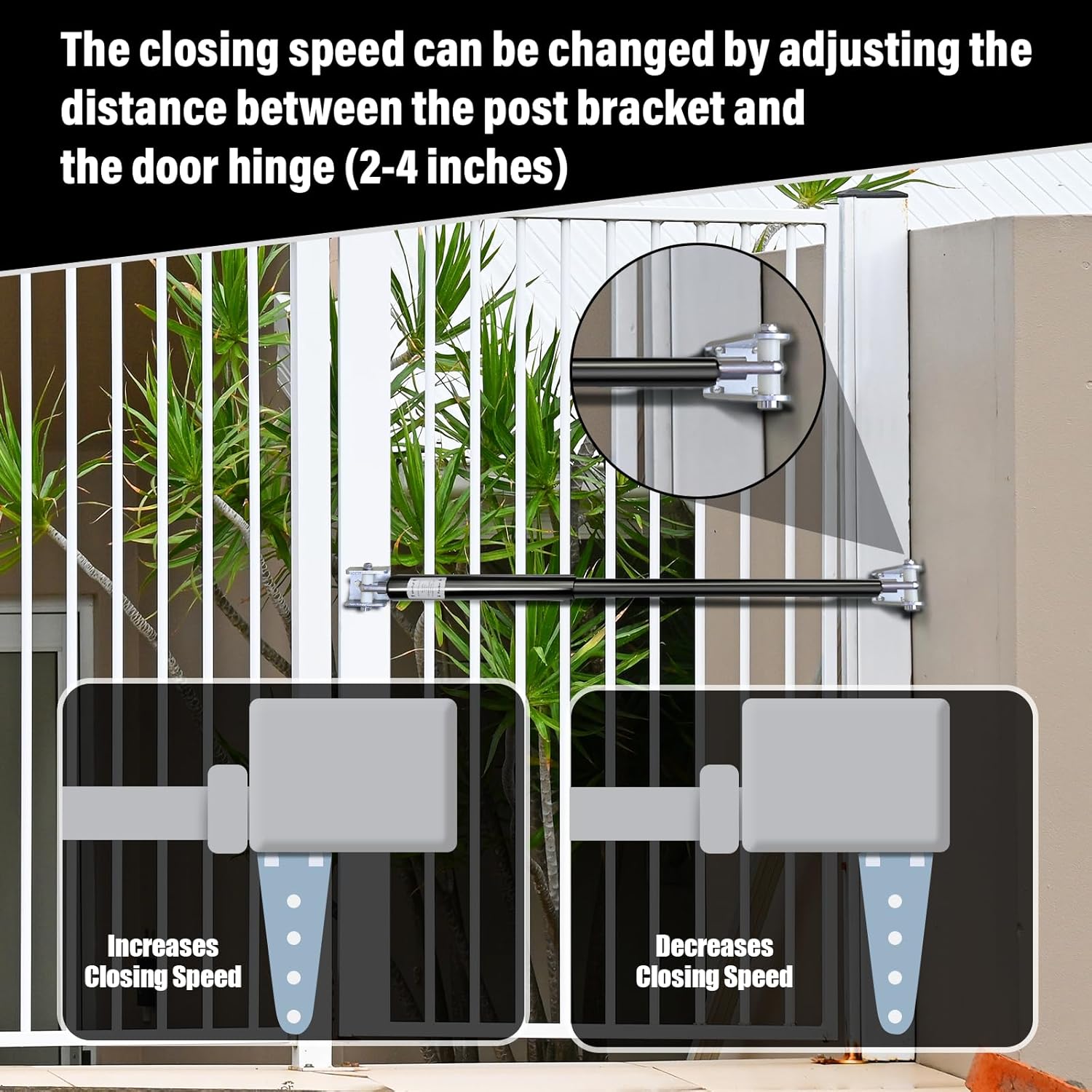 [MATERIALS & CRAFTSMANSHIP] - The hydraulic gate closer is made of high-strength metal as a whole, and the surface of the main body is lacquered, which is extremely durable and has a long service life to cope with all kinds of extreme weather outdoors
