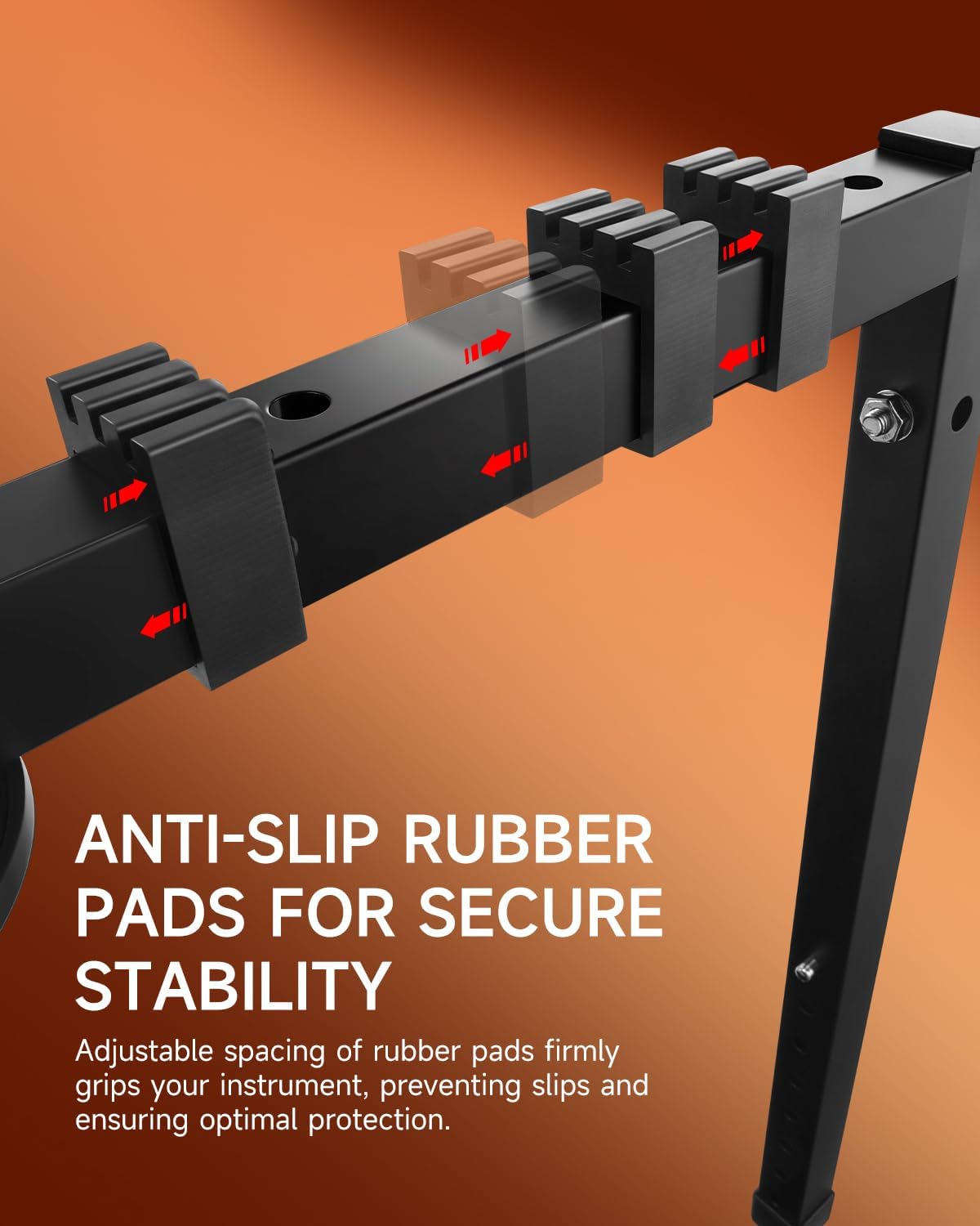 Three-Way Adjustable – Height, Width, and DepthHeight (24.4–32.7”), width and depth adjust to accommodate different playing styles and device sizes. Four foldable corner legs rotate freely from 90° to 180°, enabling multiple configurations for practice, storage, and performance display.