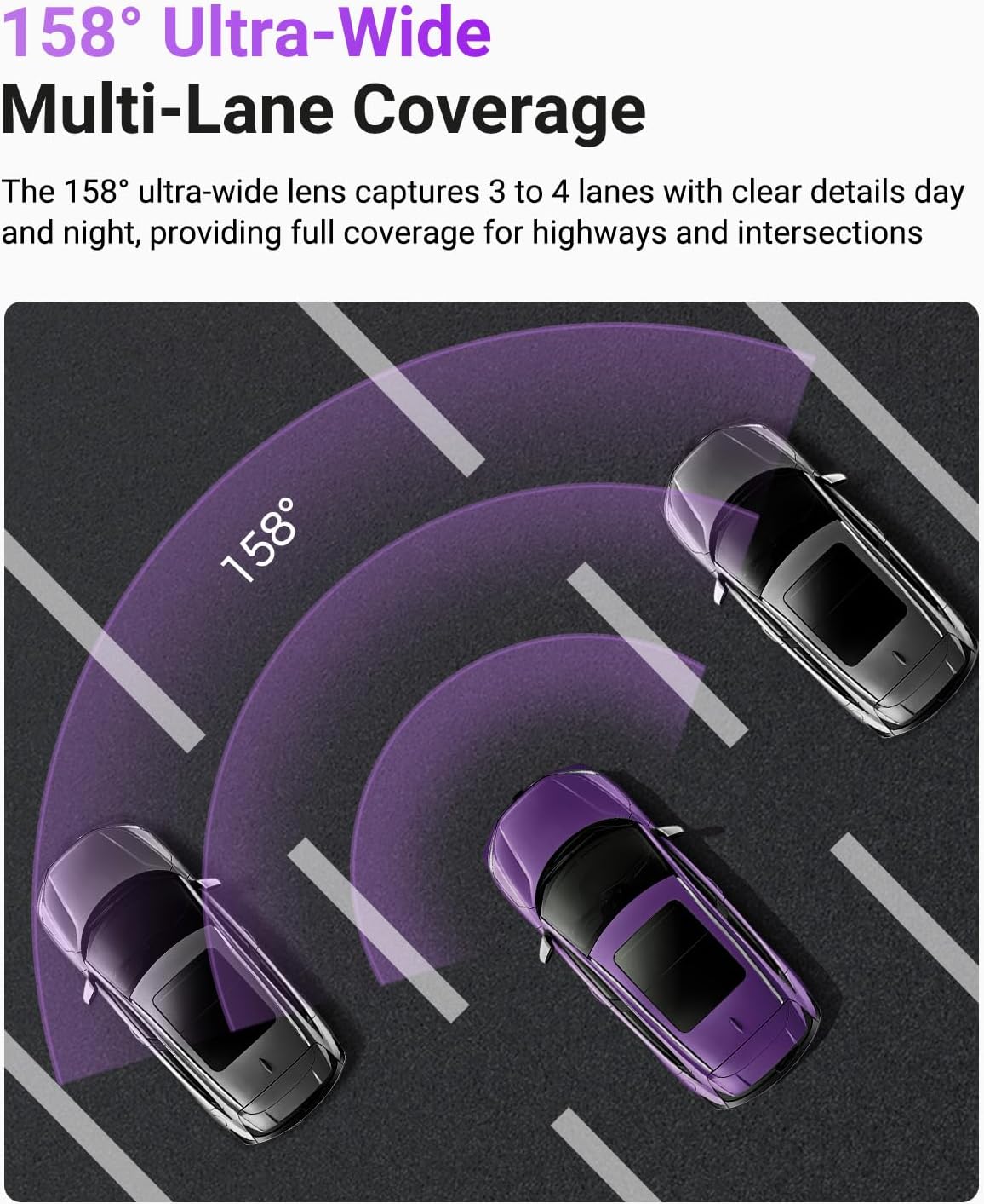 [Vantrue’s Proprietary PlatePix Tech + STARVIS 2 Night Vision] Vantrue`s PlatePix technology combined with STARVIS 2 IMX675 captures license plates in low light or backlit featuring 1.5X enhanced clarity. Featuring an F1.8 aperture and HDR technology, it balances extreme light and dark areas to accurately restore 2.7K details in high-contrast scenarios like nighttime roads or tunnel entrances/exits.