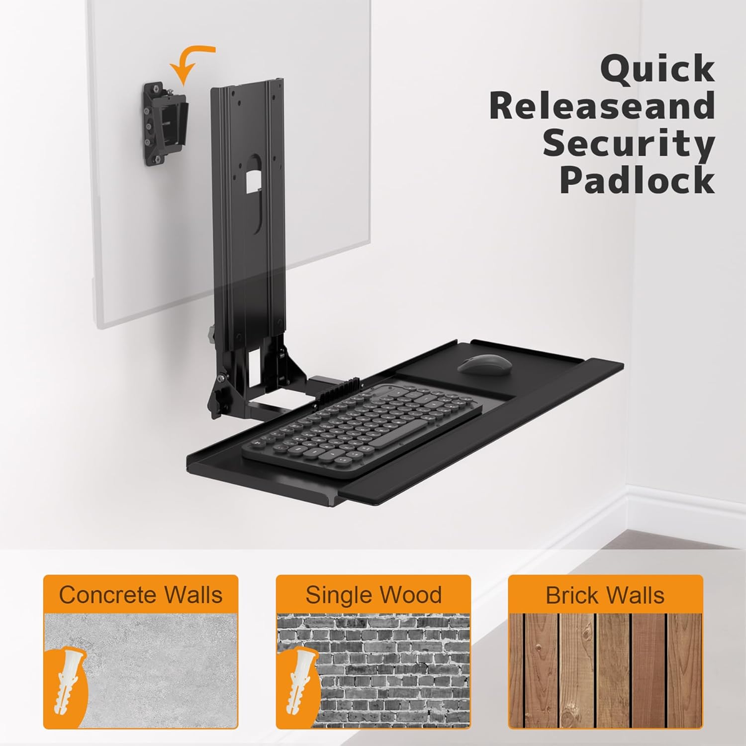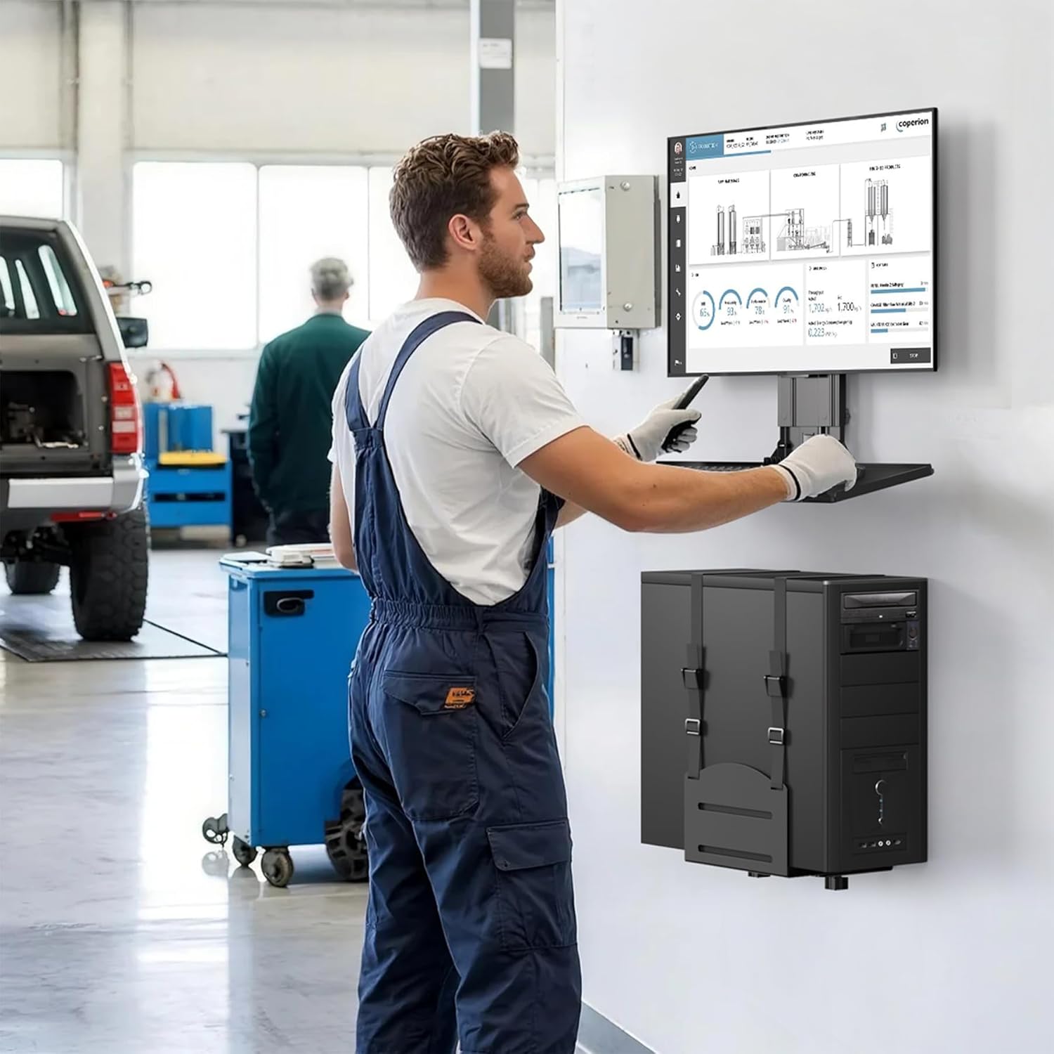 Heavy-Duty All-in-One Wall Mount Workstation: Complete space-saving setup with keyboard tray (55 lb max), monitor mount (4.4 lb max), and CPU holder (22 lb max) — perfect for hospitals, airports, and tight spaces