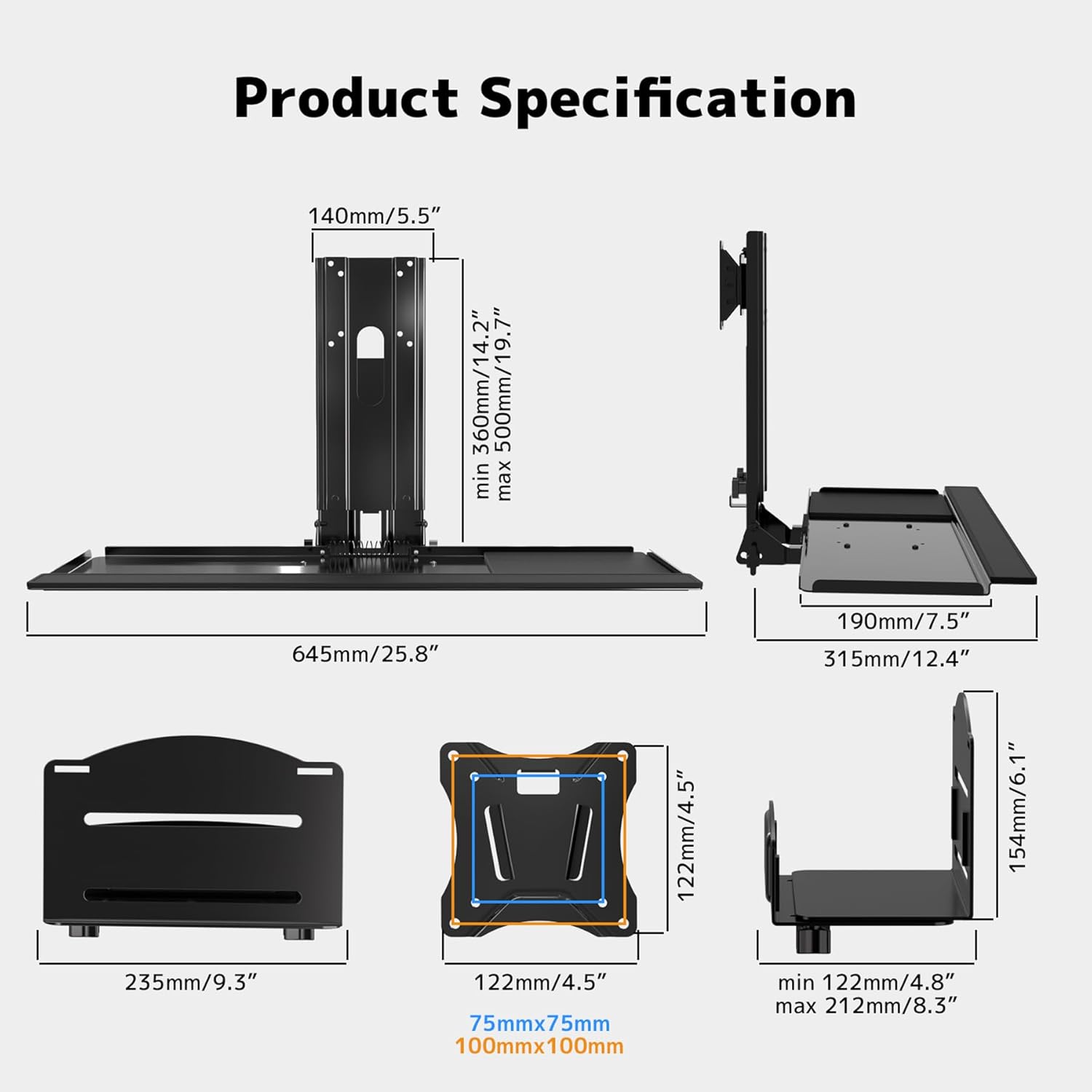 Monitor and Keyboard Wall Mount with CPU Holder for 32' Monitors (55 lbs Max), Keyboard Tray (4.4 lbs Load)