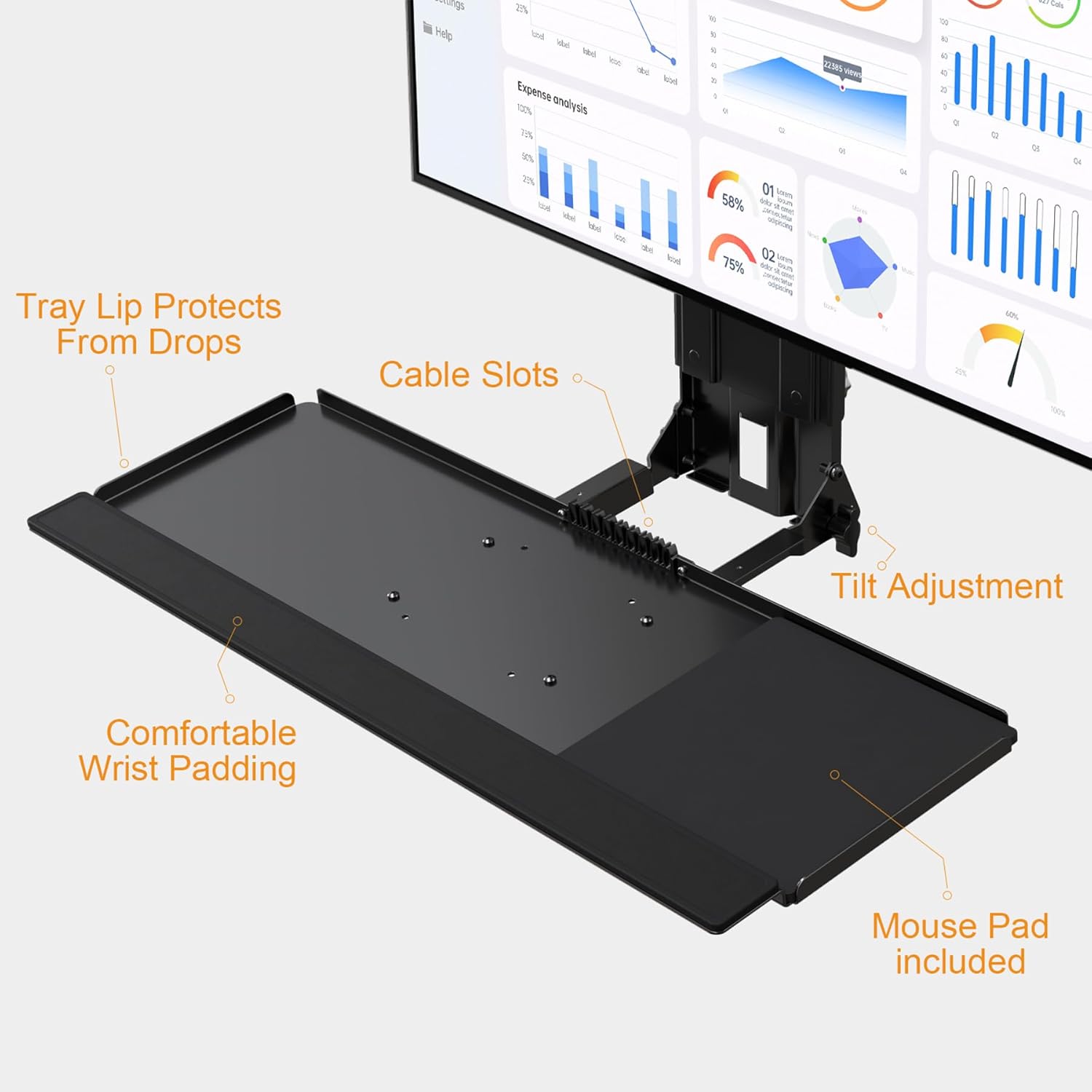 Ergonomic & Height Adjustable Design – The keyboard tray adjusts vertically and tilts to support a comfortable typing posture, ideal for shared or standing workstations