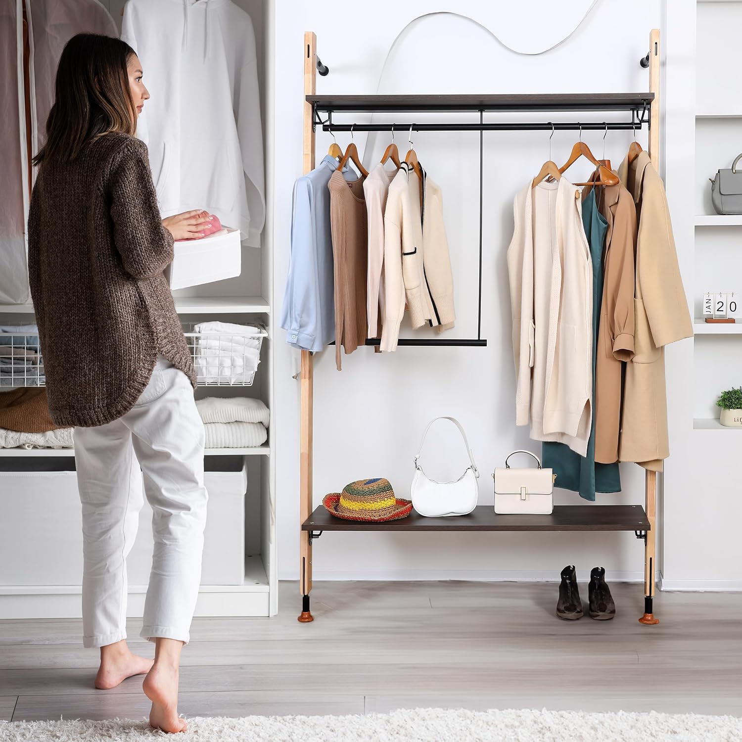 FITS ANY DECOR STYLE - The simple, clean lines of this pipe wardrobe rack make it a versatile addition to any space, easily complementing a range of home decor styles. Whether your aesthetic is modern, rustic, or minimalist, its understated industrial design blends seamlessly, adding both function and style to any room.