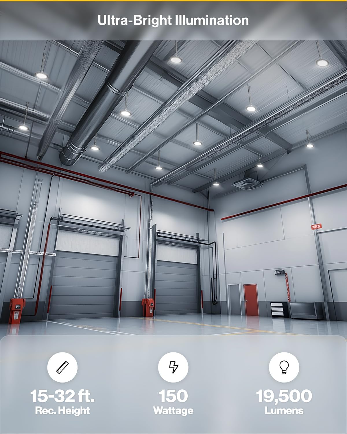 COMMERCIAL-GRADE - With its shatter-resistant aluminum housing, our UFO High Bays replace outdated HID fixtures with resilient and durable illumination. IP65 waterproof rating ensures reliable, bright light in any weather. UL & DLC certified.