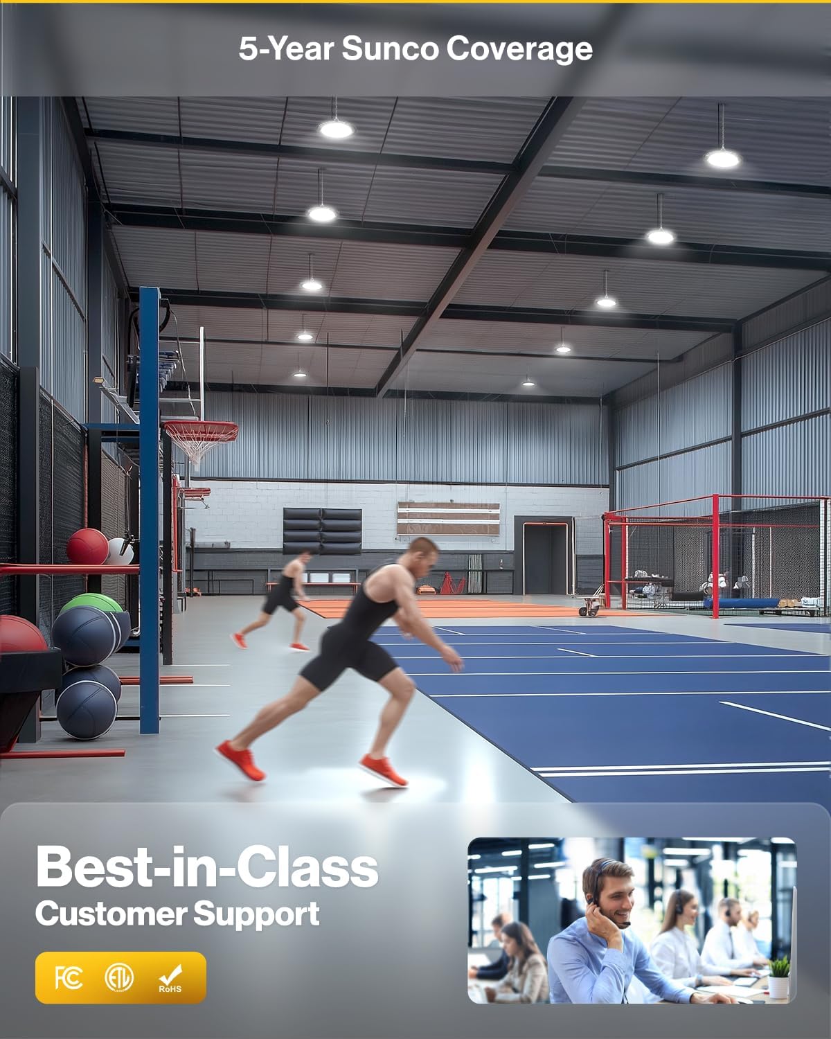 EASY INSTALL & OPERATION - Easily install Sunco`s LED UFO High Bay using one of 3 methods: Hook Mount, Ceiling Mount, ” NPT Pole Mount. Includes lifting ring.