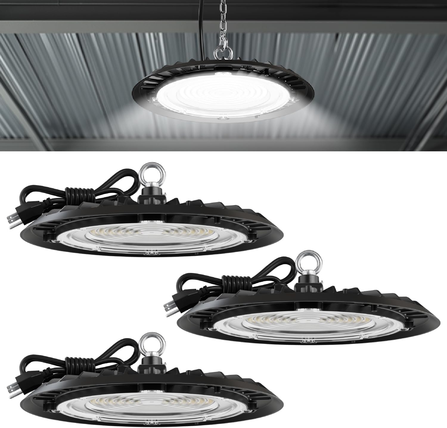 UFO LED High Bay Light, Plug & Play, 150W, 5000K Daylight, IP65 Waterproof, Shatterproof Fixture UL, 3 Pack